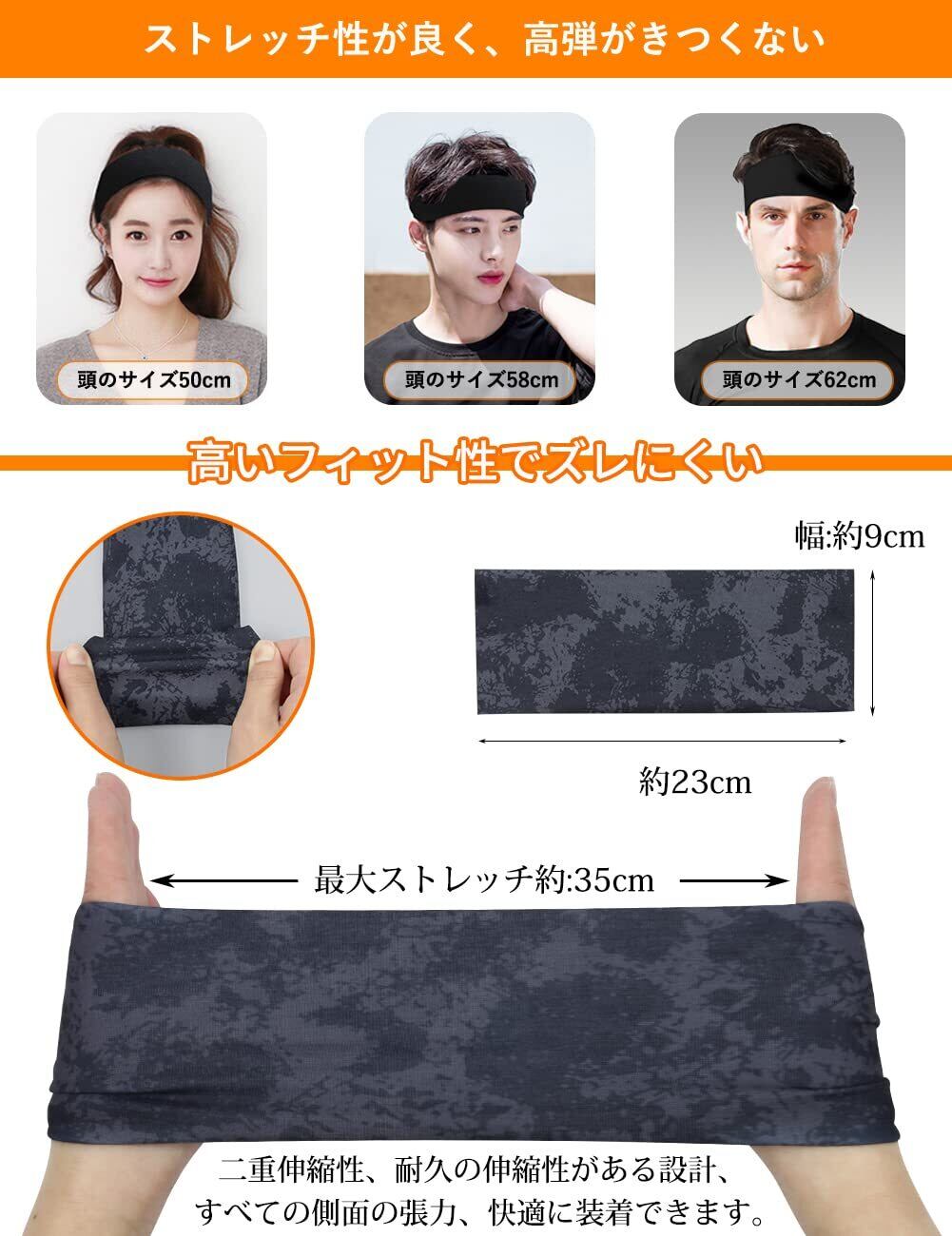 【高いフィット性でズレにくい】メンズヘアバンドは柔らかく伸びが有る素材を使用し、頭を優しく包み込んで、きつすぎたり緩すぎたりせずに、完璧にそして非常に快適にあなたの頭にフィットして、締め付け感がなく、激しい動いてもズレにくい。また、幅が太いので小顔に見え、どんな頭の形にも合います。
