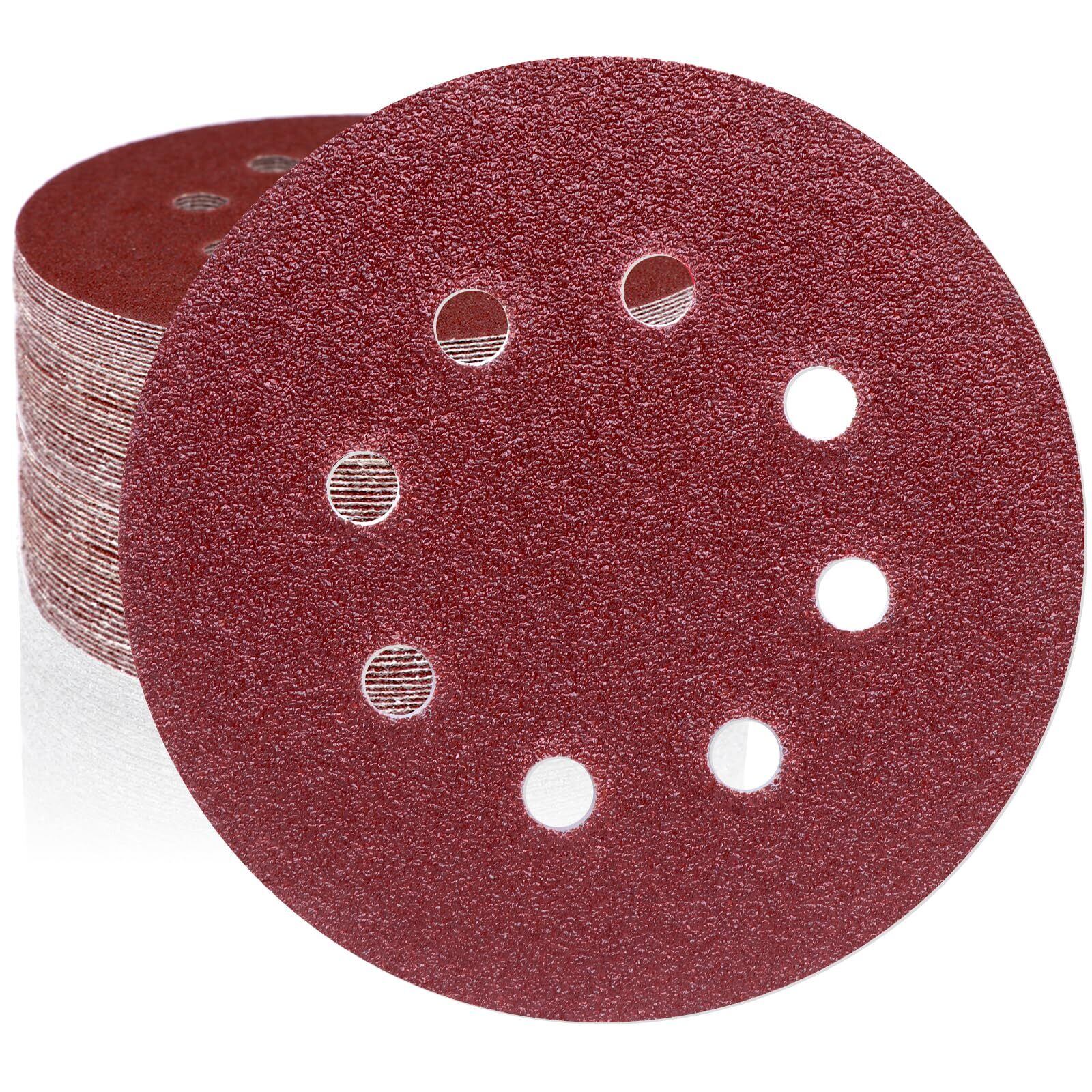 【費用対効果の高いサンドペーパー】アルミナ茶赤125mmサンドペーパー、さまざまな材質の製品の研削と研磨に適しており、他の研磨サンドペーパーと比較して、より手頃な価格で、優れた耐久性と効率的な研削能力を備えており、時間とコストを節約できます