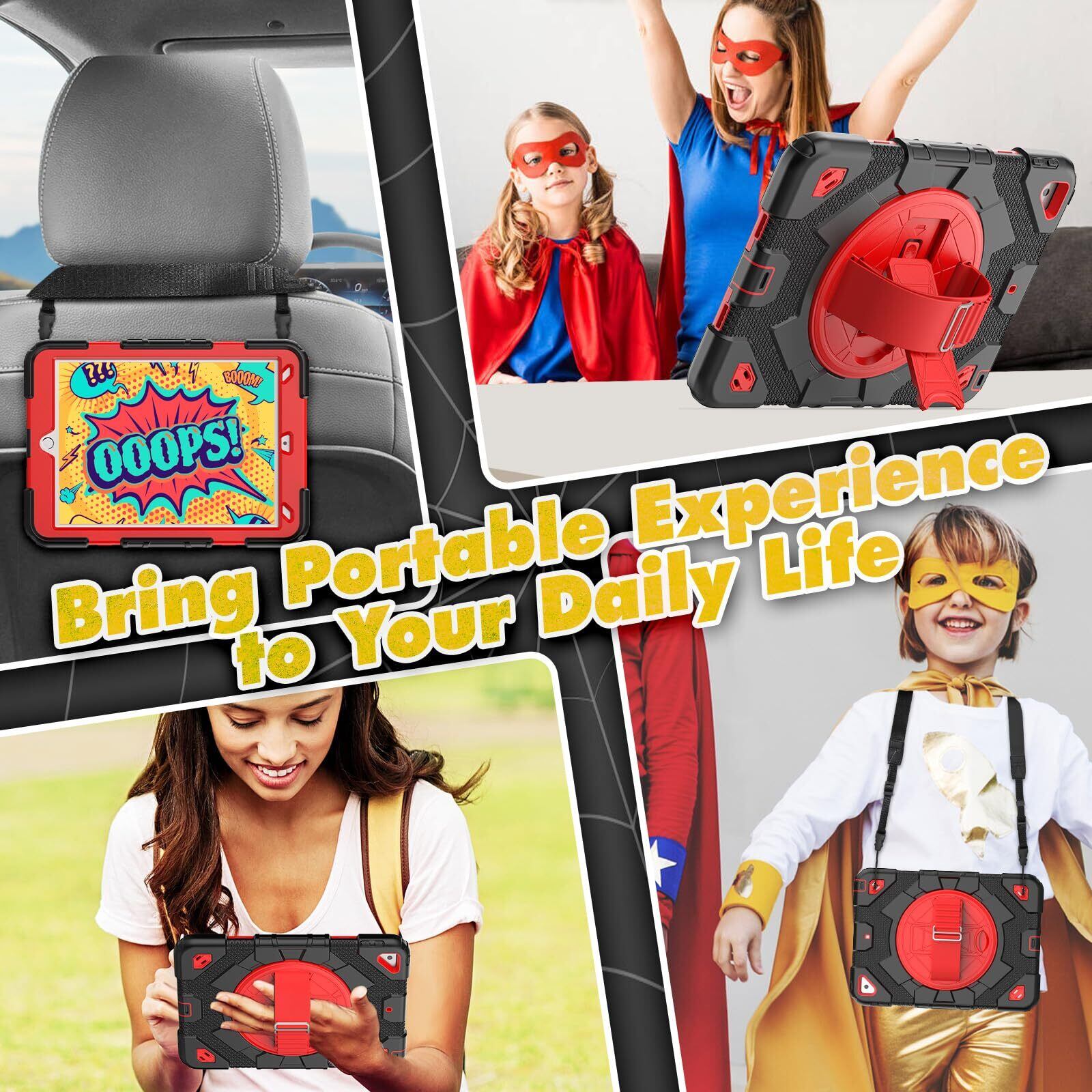 Timecity iPad 第11/10世代 ケース (2025、A16) 耐衝撃 iPad 11世代/ 10世代 ケース 2025/2022モデル 360回転スタンド 保護フィルム ペン収納 ハンド&ショルダーストラップ付き 工事 現場 仕事 頑丈 耐久 三層保護 アイパット 第11/10世代 カバー (ブラック+レッド)