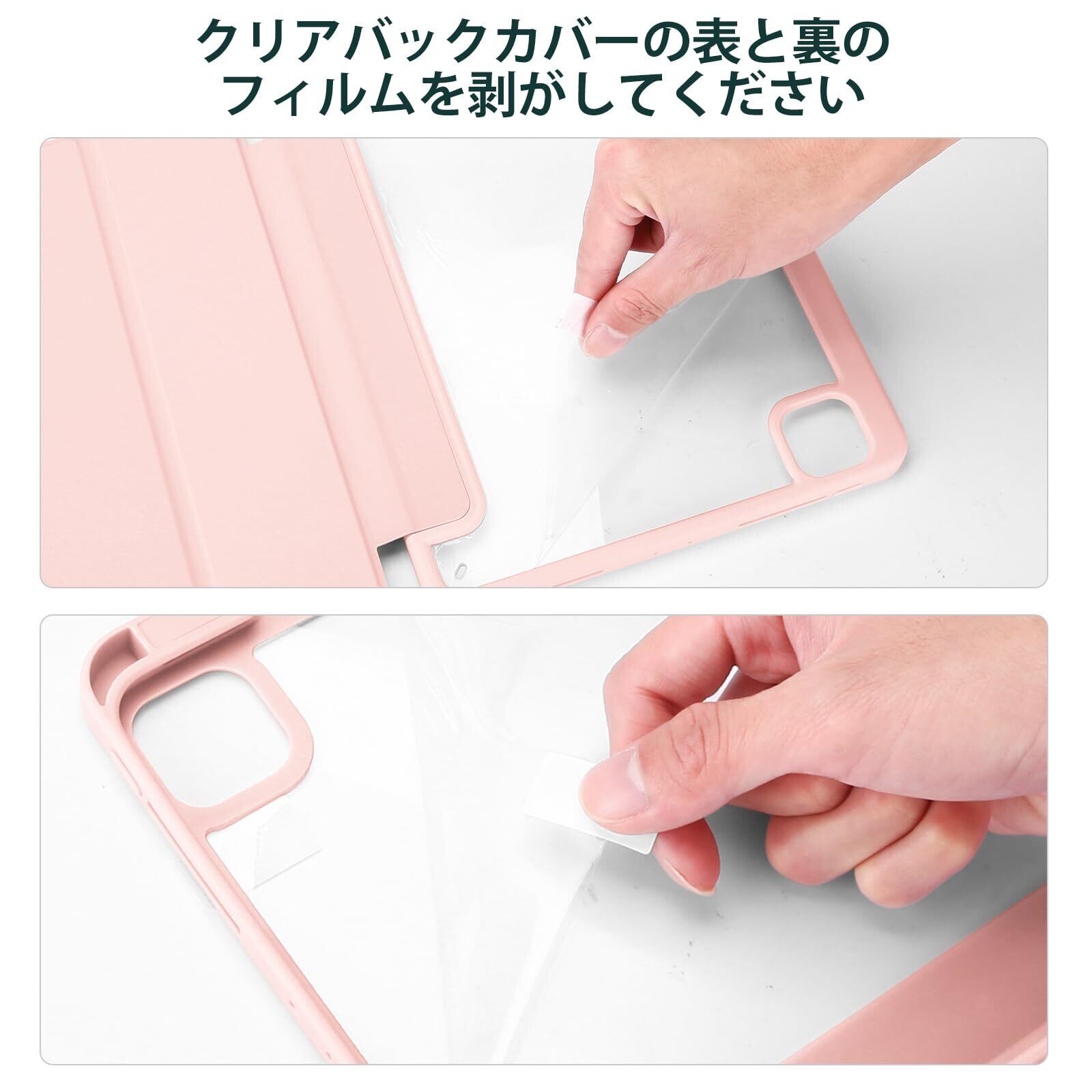【2022最新】ProCase iPad Pro 12.9 ケース 第6/5/4/3世代に適用(2022 2021 2020 2018) 透明 クリアバックカバー ペン収納 耐衝撃 三つ折り スタンド スマートカバー - ピンク