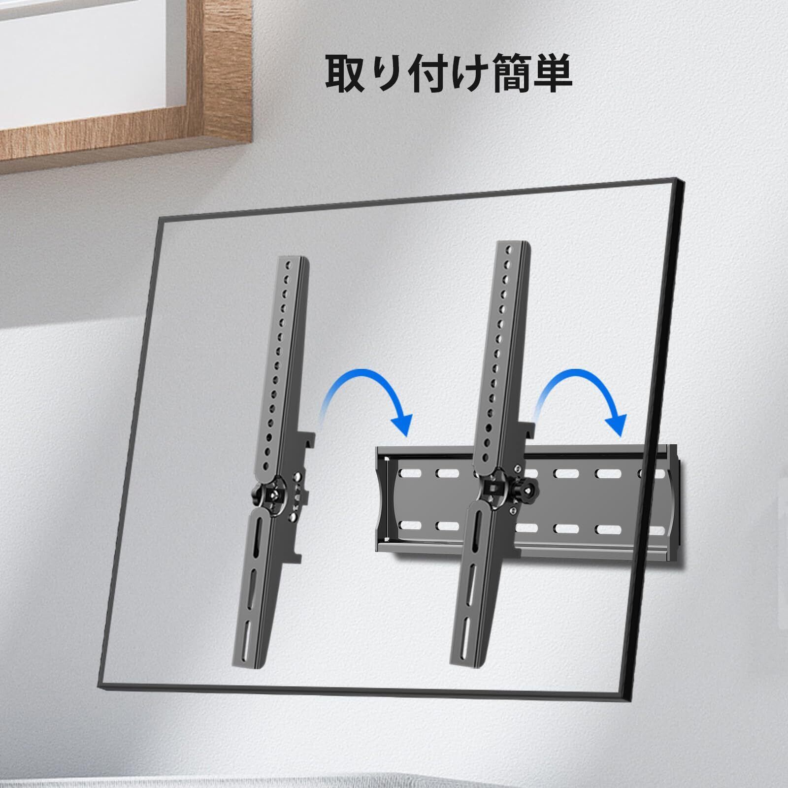 【省スペース-壁掛け金具】:スペースを節約するために、テレビを壁の近くに置いてください。 私たちの軽量薄型傾斜マウントは、テレビの背面を壁からわずか50mm離して保持し、滑らかで整頓された外観を実現します、省スペース。日々の掃除を楽にします。