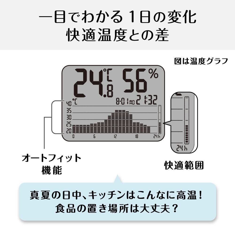 24時間の温湿度変化がわかるグラフ付きデジタル温湿度計