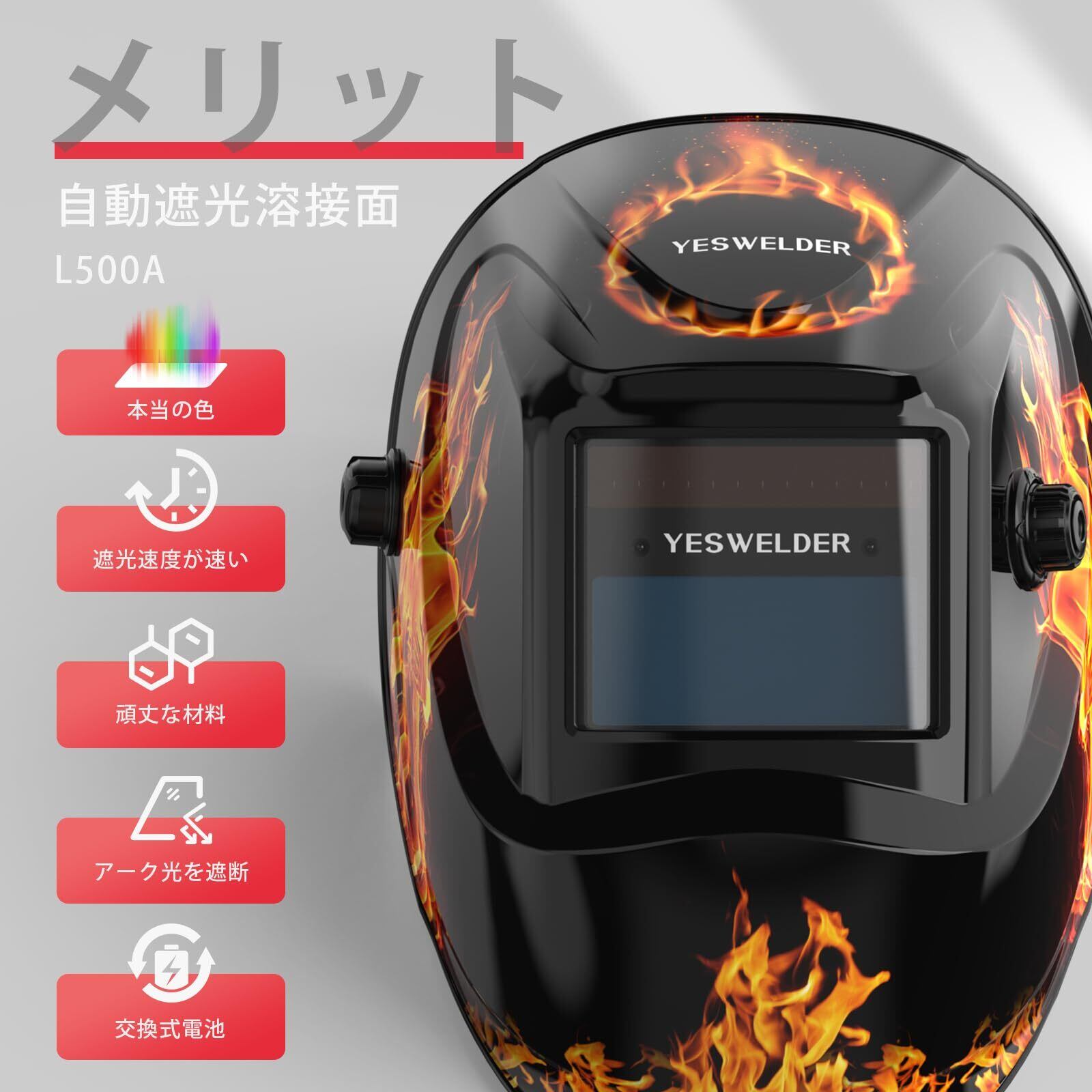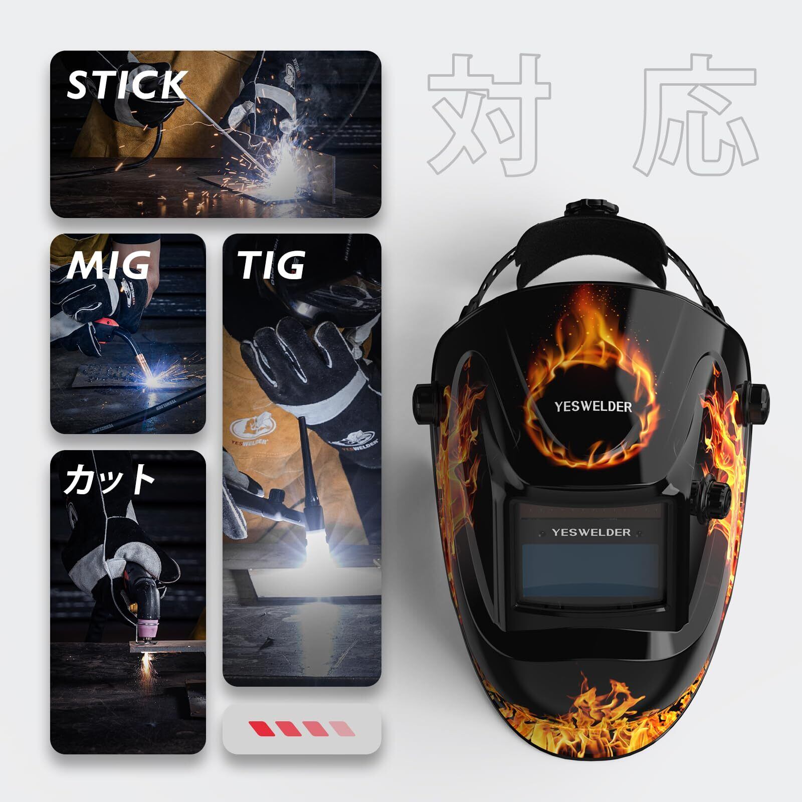 【2022最新】YESWELDER 溶接面 本当の色を映す ソーラーパワー 自動遮光溶接面 1/30000秒 遮光度4/5-9/9-13 TIG MIG ARC溶接に対応溶接ヘルメット LYG-L500A-B