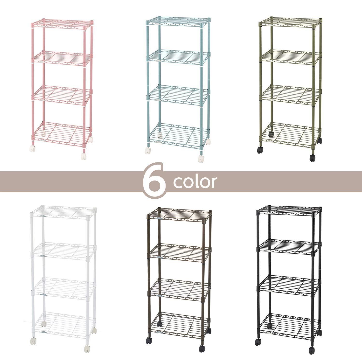 ドウシシャ ルミナス カラーラック 白 ホワイト 4段 幅45 スリム オシャレでかわいい スチールラック 棚 収納 全体耐荷重120kg キャスター付き ポール径19mm 幅45.5×奥行29.5×高さ104 キッチン ランドリー 押入れ LCR45-4WH