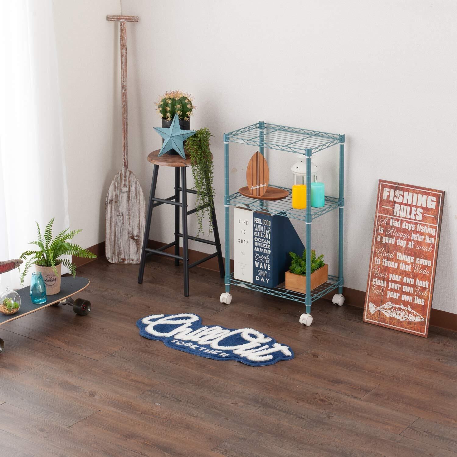 材質:スチールシェルフ(棚板)・ポール:スチール(粉体塗装) ナイロンキャスター:ナイロン樹脂 スリーブ:ABS樹脂