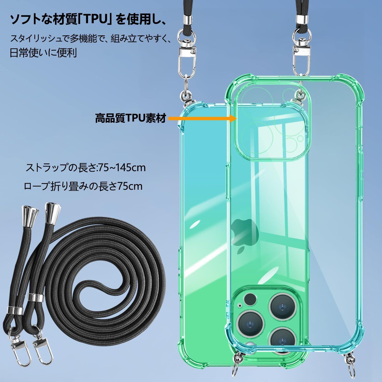 【対応機種】OPPO Reno5 A専用デザインです。【色落ちしない】グラデーションが美しい2色のTPUケースです。色の鮮明さが長く保たれます。本製品は個別に特殊な方法で着色しているため、色の濃淡や模様には個体差があります。また、写真の色と実物の色は、光の加減や画面の色調によって若干異なる場合がございます。【長さ調整可能・使いやすさ】調節可能なロープは両手を放します,可斜めがけ、可肩掛け、ショルダーバッグは任意の長さまでロープをかけることができます。ショルダーストラップは取り外し可能なので、それを使わなくても簡易的なスマホケースとして使用することができます。外出、登山、買い物、自撮り、電車内の時など日常生活からできるスマホ紛失・落下防止できるスマホネックストラップリングで両手を自由にし楽な日常ができます。作業、旅行、出張、ショピング、散歩、コンサート、パーティーに最適です。手を離しても、携帯電話を携帯できます。【機能】軽量なのに丈夫!四隅に衝撃吸収クッションを装着。ケースの縁が高く設計されて、スクリーンやカメラレンズが擦り傷からスマホを保護します。装着状態でもコネクターや音量調節、電源ボタンの操作が可能、ワイヤレス充電に対応しておりケースを外さずにでも充電が可能。(純正のライトニングケーブルのみ確認済み)【製品】30日品質期間、もしお届けした製品に何か問題がございいますたら、メールでご連絡してください。状況確認してから、無料再送、又は返金対応致します。お客様が満足できるよう、誠心誠意対応させていただきます。