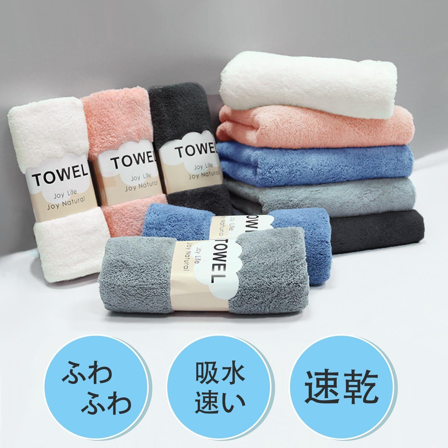 フェイスタオル マイクロファイバー タオル 10枚セット 約35X75cm ホテル仕様 柔らか肌触り 高速吸水 速乾 耐久性 人気 家庭 エステ サロン スポーツ 業務用 (5色)