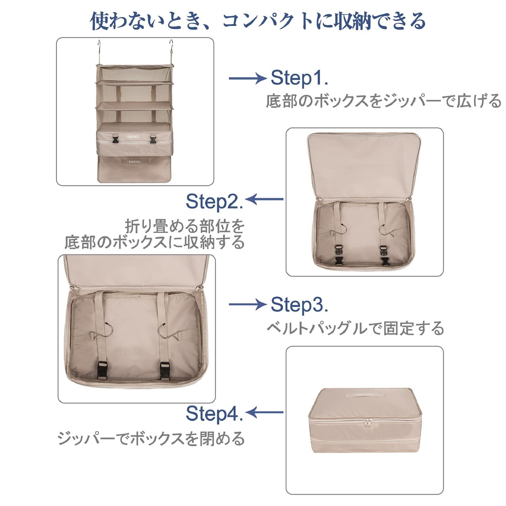 TABITORA(タビトラ) クローゼット吊り下げ収納 インナーバッグ 衣類ラック 収納 旅行 出張 クローゼット 収納ボックス 吊り下げ 省スペース 大容量 衣装ケース 4段 取付簡単 折り畳み式 ベージュ XL