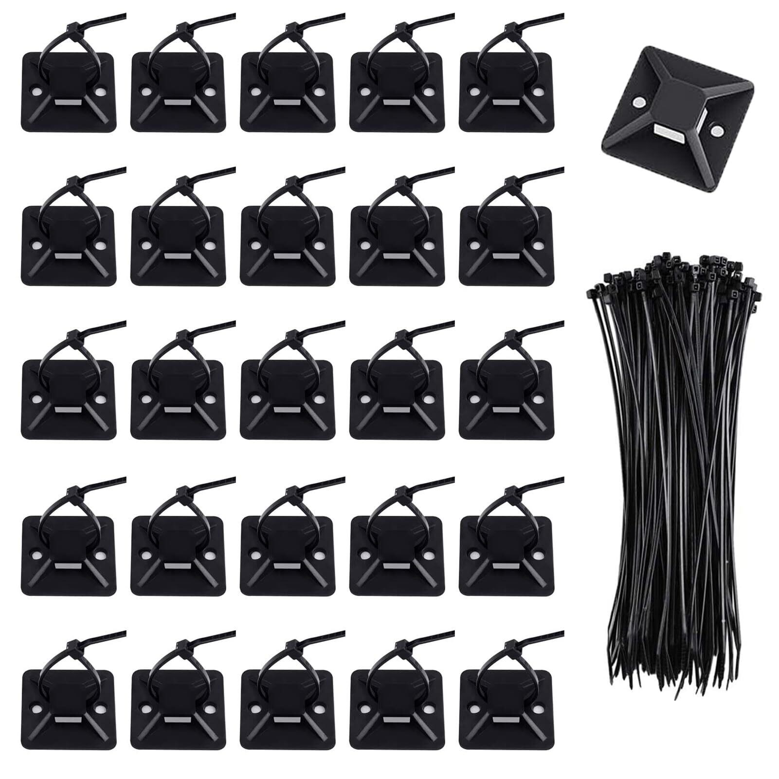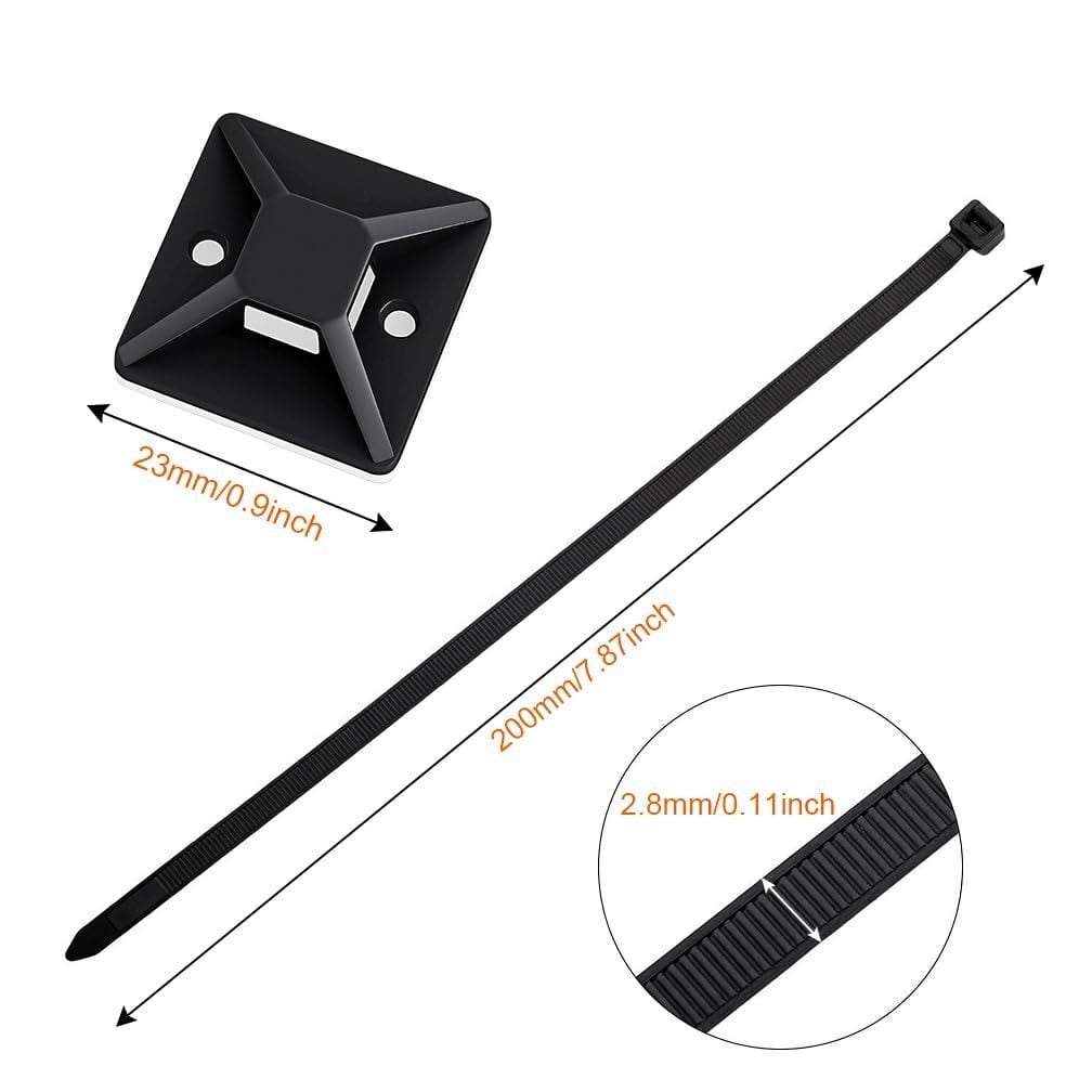 ケーブルタイ マウントベース ナイロン結束バンド 50個 セット ブラック 強力粘着テープ付き ナイロンケーブルストラップ 配線 固定具 ケーブル コード 整理 収納 耐熱 耐候性 23mm By Viaky