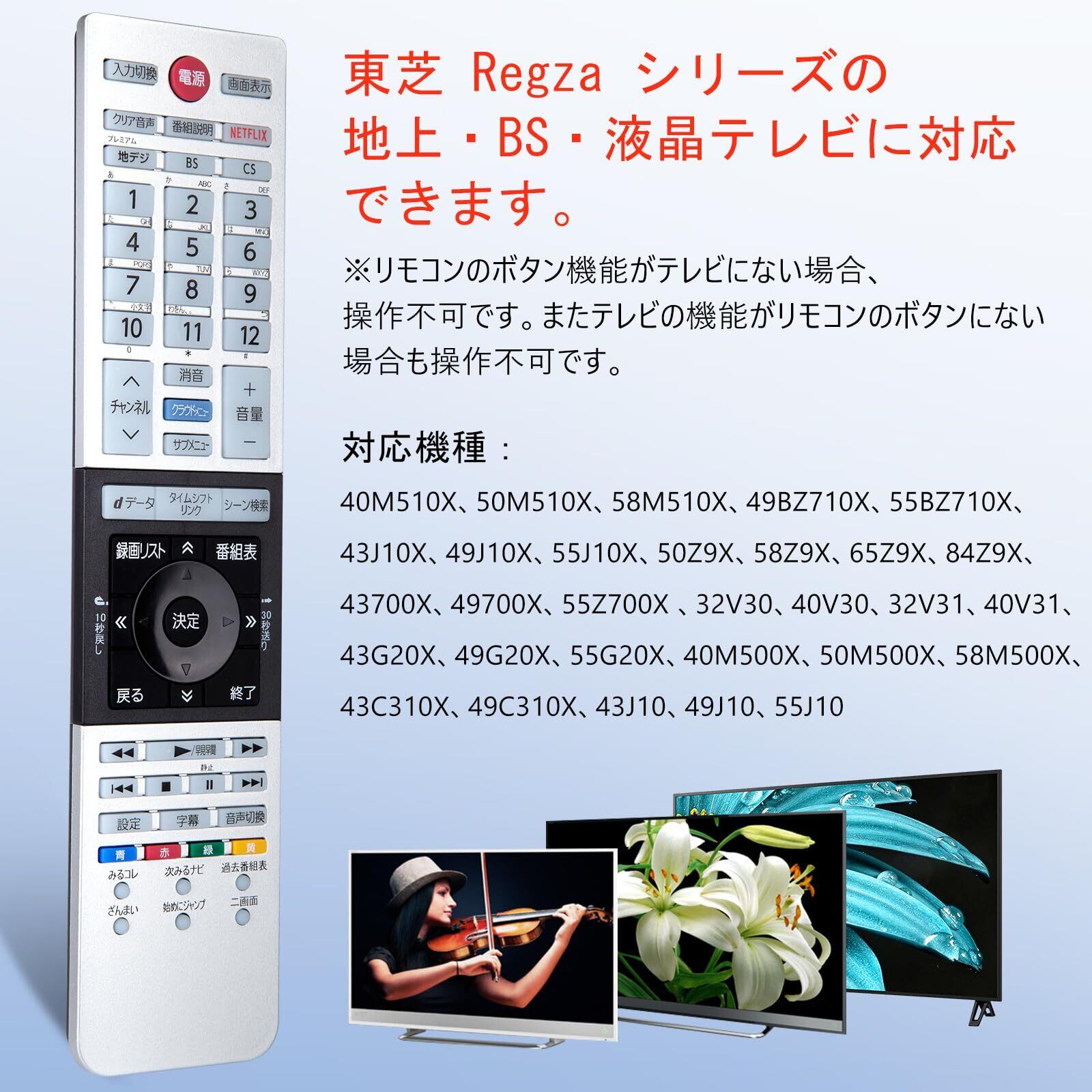 【対応機種】東芝 toshiba regza テレビ 40/50/58M510X ,49/55BZ710X ,43/49/55J10X ,50/58/65/84Z9X ,43/49/55Z700X ,32/40V30 ,32/40V31 ,43/49/55G20X ,40/50/58M500X ,43/49C310X ,43/49/55J10に対応できます。