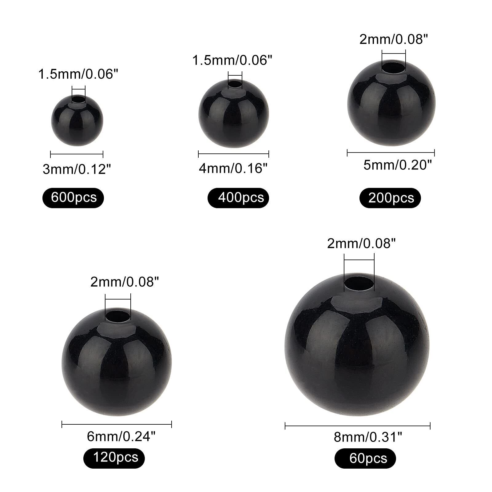 自由に選べる5サイズ:直径3mm/4mm/5mm/6mm/8mmの5サイズの黒いビーズがあるので、ご使用パーツにあうように、自由にお選びいただけます。