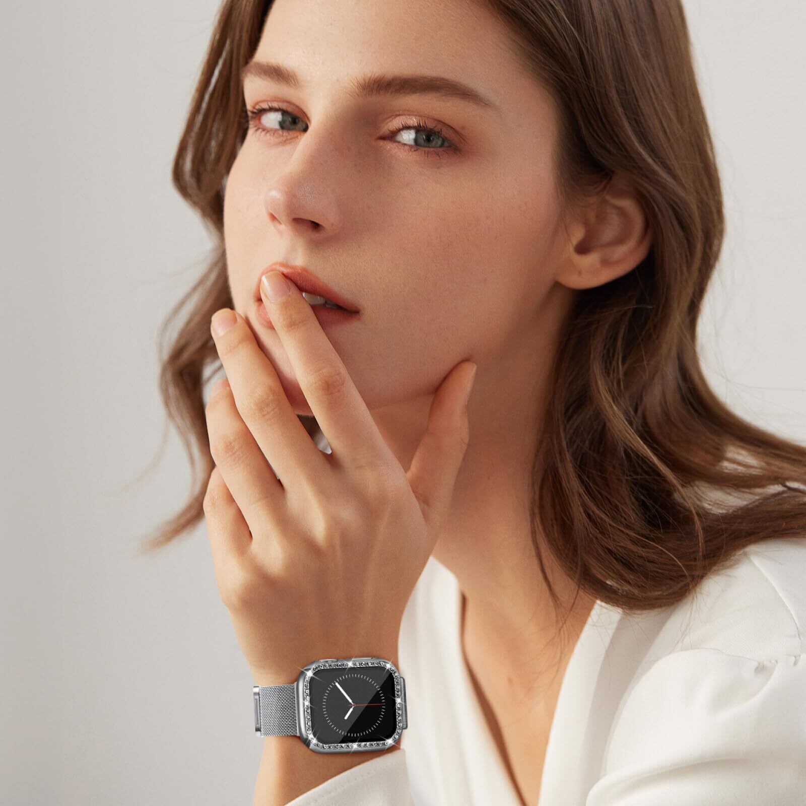 【新春セール】[Straplanet] コンパチブル アップルウォッチ バンド マグネット ステンレス留め金製 Apple watch バンド 磁気 金属 メッシュ 通気 Apple Watch キラキラ カバー付き ダイヤモンド アップルウォッチ ベルトとケース 一体型 セット レディース Series 9 8 7 の45mmに対応 | allstore5