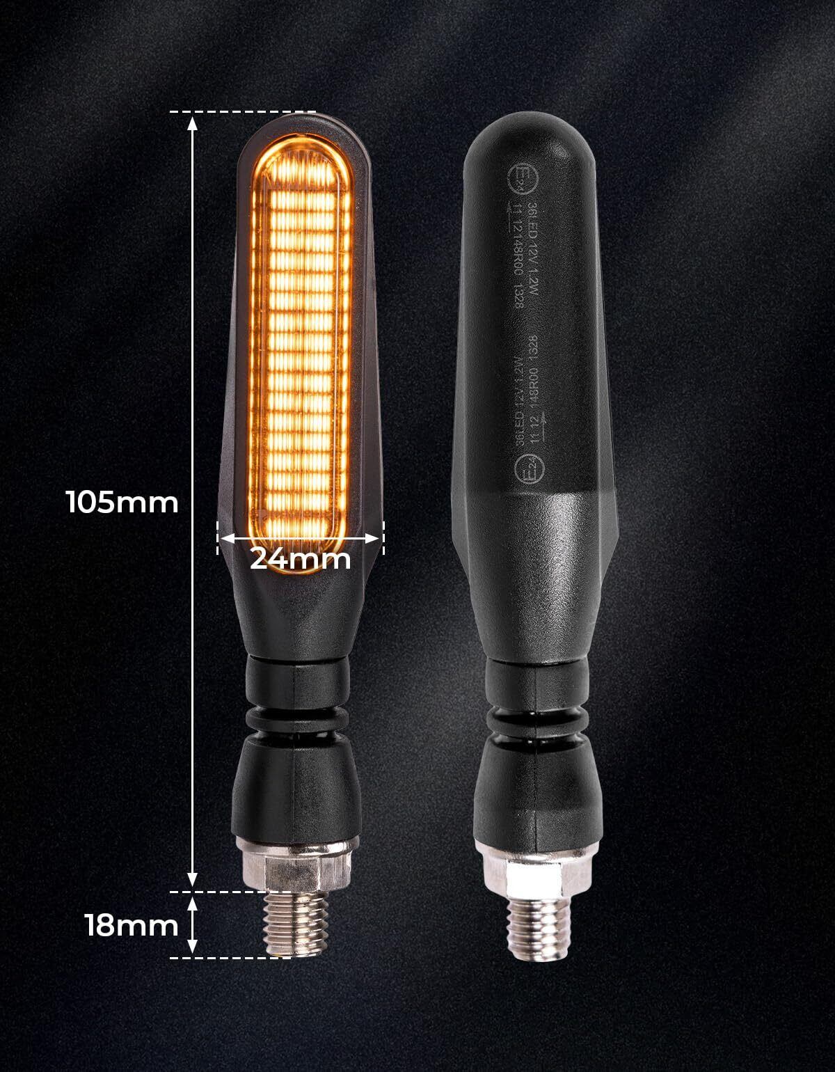 【3倍以上の輝度】流れるウィンカーは12個から36個までのLEDチップを増加し、改良により3倍以上の輝度を実現した!36個LEDチップで、最大値47820ルーメンを達成しました。昼間でも夜間でも超強力な警告効果を提供します。高輝度で走行安全性を向上させ、バイクをさらにクールに見せます。