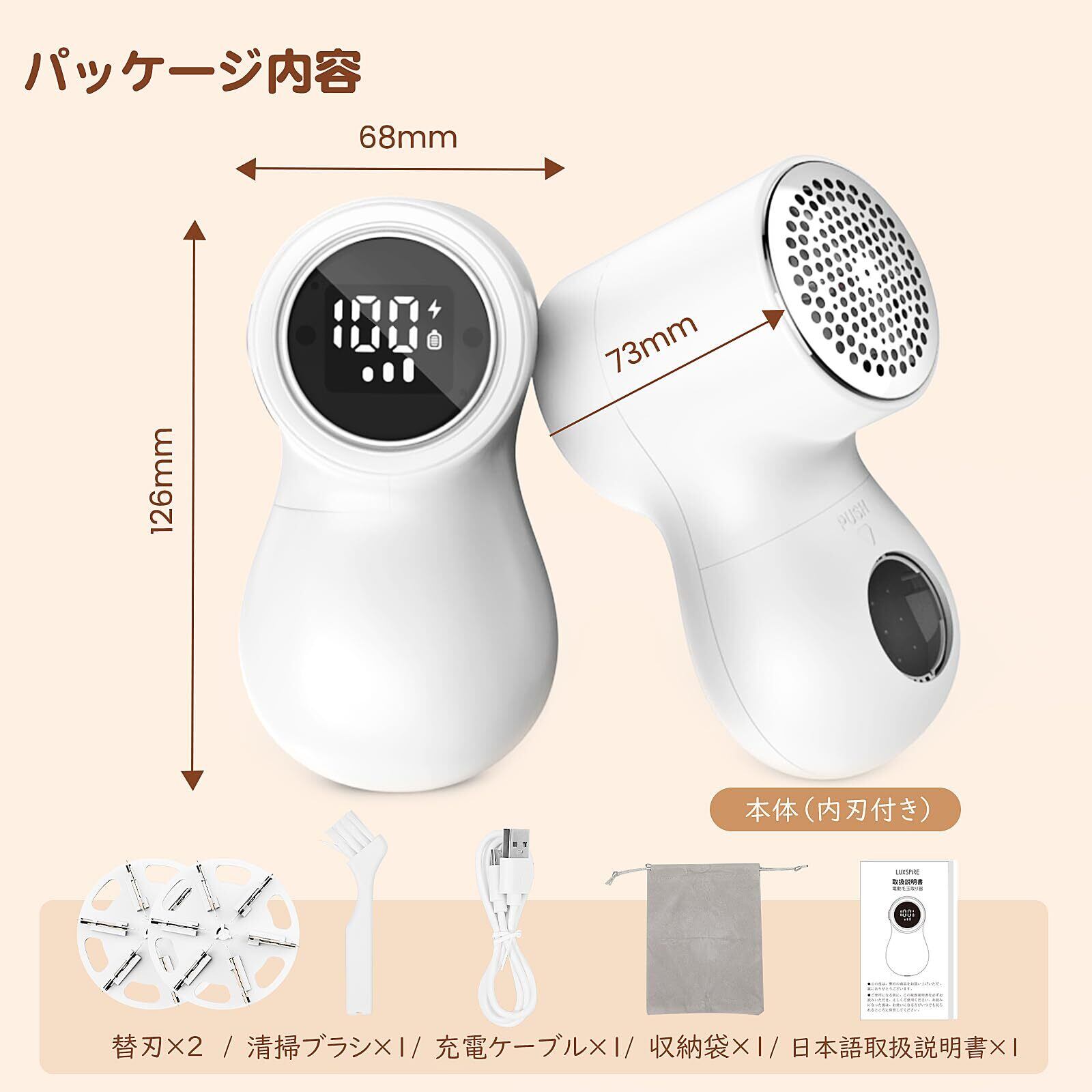 【新着商品】Luxspire けだまとり 電動 充電式 毛玉取り 強力6枚刃 替え刃2枚付き 液晶ディスプレイ 毛玉取り器 3段階スピード調整 毛玉クリーナー 毛玉取りき 毛玉対策 生地を傷めない ワンボタン操作 毛玉を刈り取る TYPE-C コードレス 安全措置あり 軽量 清掃ブラシ付き 収納袋付き 日本語取扱説明書付き