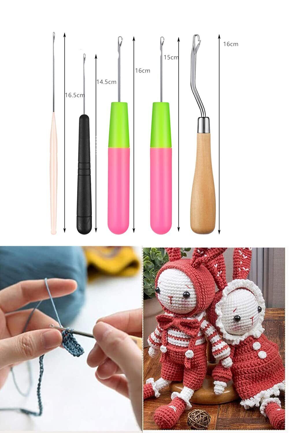 YFFSFDC マイクロ 編み物用 ラッチフック かぎ針 編み針 毛織り針カーペット編み 毛糸DIYマフラー帽子などのメンテナンス用 かぎ針セット 編み針 人気5本セット
