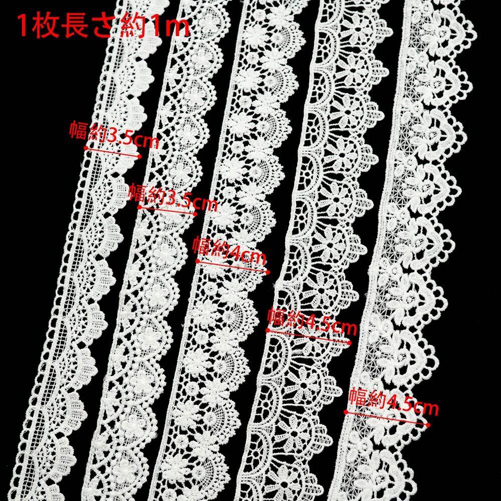 sempiterno 5タイプの流行りのホワイトミニ花柄レース生地 ミルクシルク髪飾り刺繍レース シングル長さ約1m ウェディング糸ホームテキスタイル布地刺繍バーコードDIY補助材料 誕生日 クリスマス ギフト 装飾材料 縫製素材(5タイプアソート)