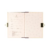 【内容】表紙/紙製、クロス貼り加工、金銀箔押し 中紙/368ページ(2柄) 罫線8mm 鍵/金属製(2本付) しおりひも付 PP箱入