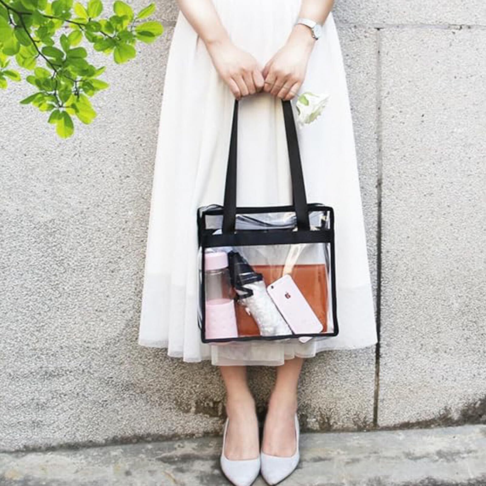 「環境に優しいPVC素材」:クリアバッグは質感が良い透明なPVC素材を使用して、耐久性と防水性があり、雨が降っても大丈夫です。