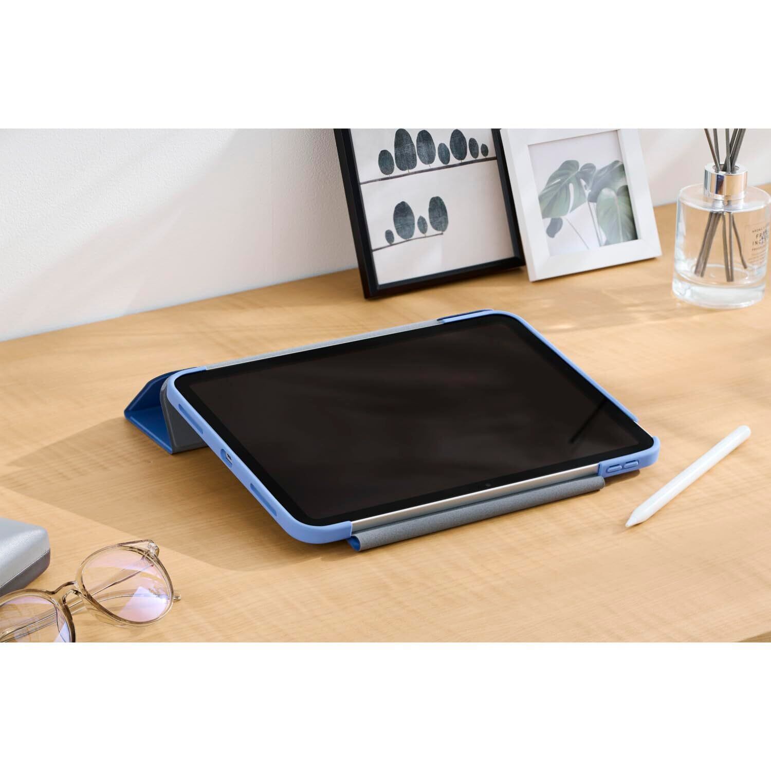 側面に弾力性のあるTPU(熱可塑性ポリウレタン)素材を、背面に指紋の付きにくいポリカーボネート素材を使用した、薄く、軽く、衝撃に強いiPad(A16)、iPad (第10世代 2022年モデル)用フラップケース です。