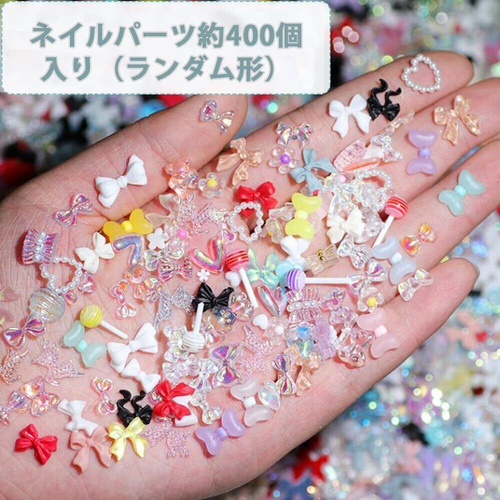 GOODCHI ネイルパーツ 3D 立体 リ蝶々 蝶結び キャンディー 花 ハートオーロラ 可愛い カラフル DIY ジュエリーパーツ ネイルアート ランダム形 約400個入り