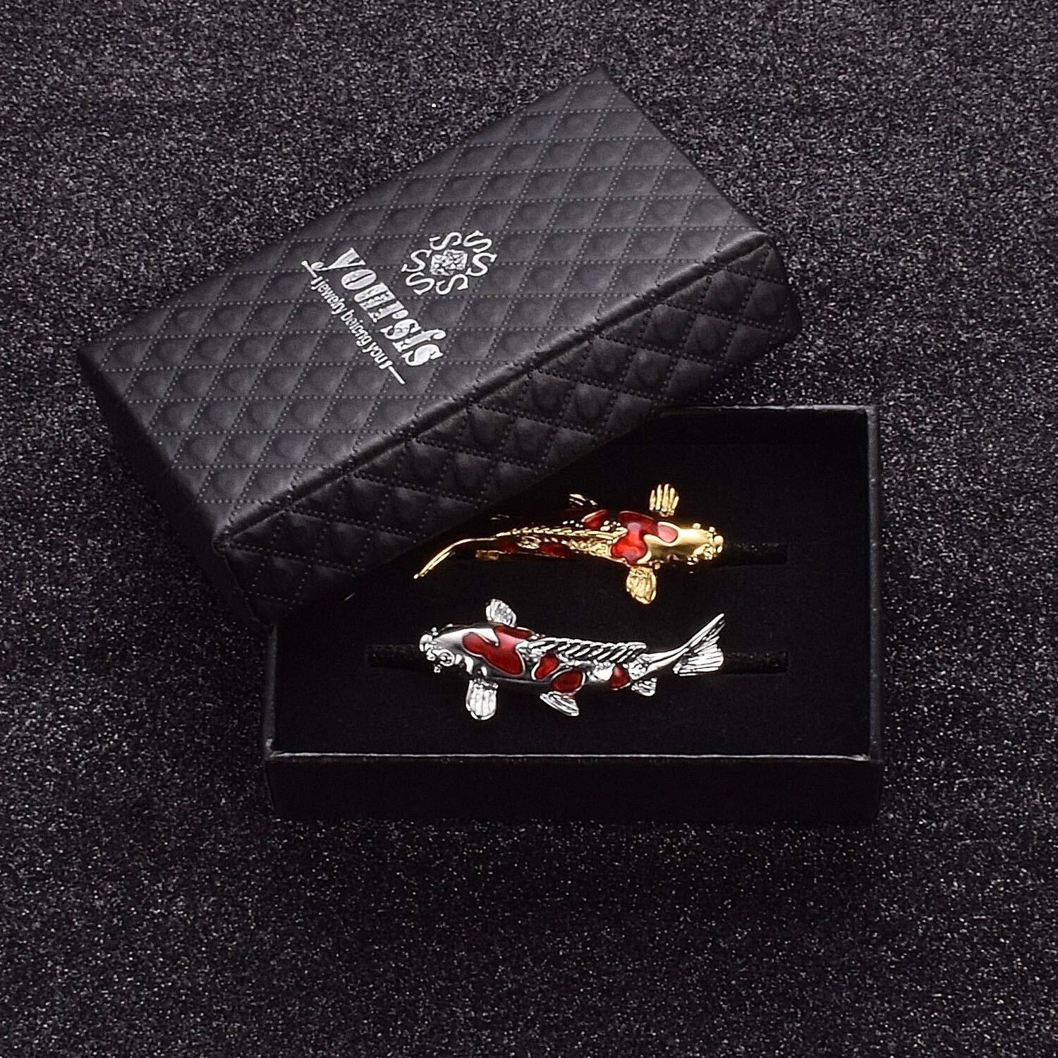 幸運な鯉があなたに幸運をもたらし、毎日幸せになることを願っています。【製品情報】素材:エナメル、真鍮(素材にこだわり腐食しにくい真鍮素材を使用しております)。コイネクタイピンサイズ:4cm*1.8cm。カラー:金、銀。数量:2本セット。付属品:yoursfs専用ケース、ジュエリーメンテナンスマニュアル。