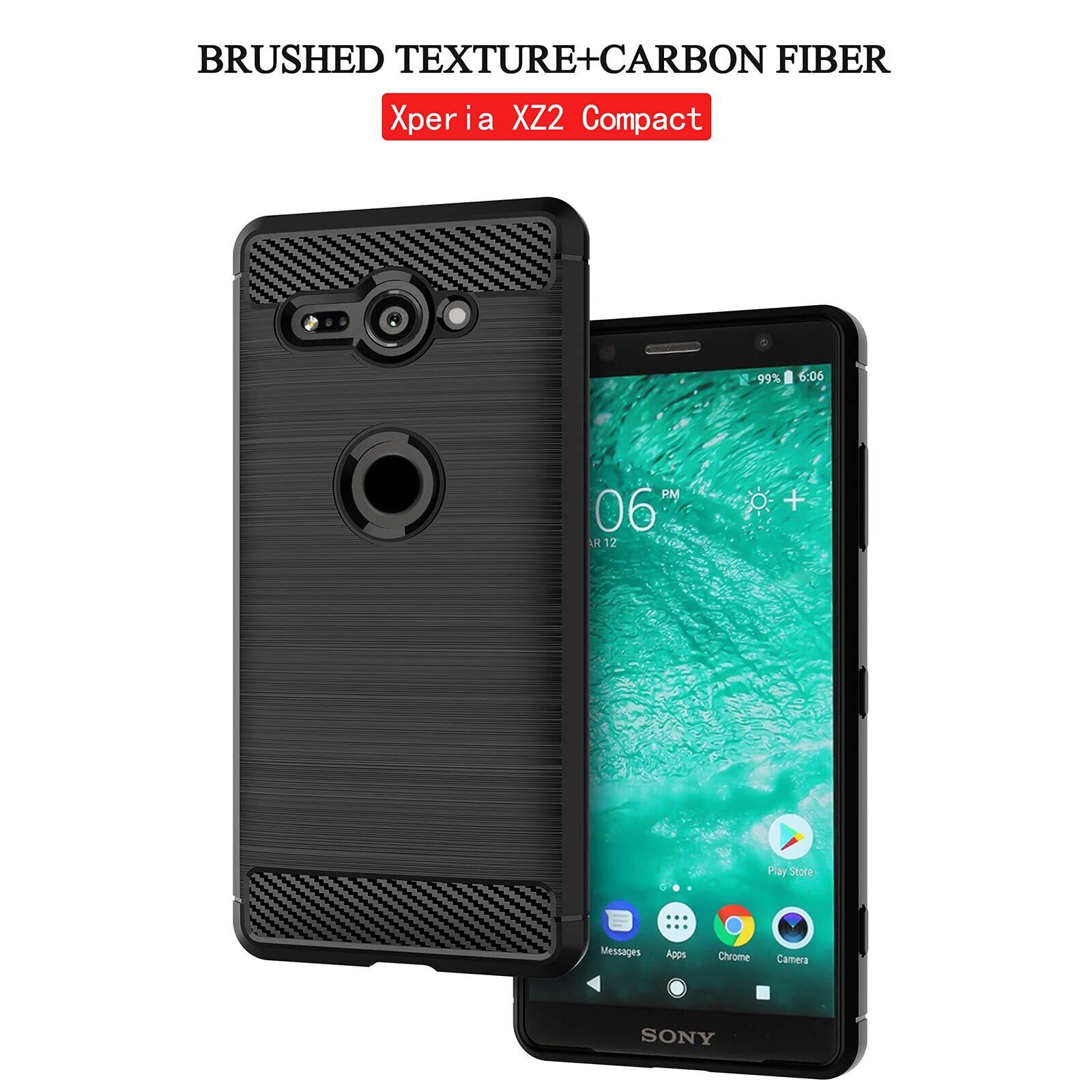【UNEED】SONY Xperia XZ2 Compact 用の スマホケース SO-05K用の ケース カバー ケース 炭素繊維カバー (素材/TPU) 指紋防止 滑り止め 薄型 軽量 耐衝撃 簡易脱着 ソフトケース カラー:黒