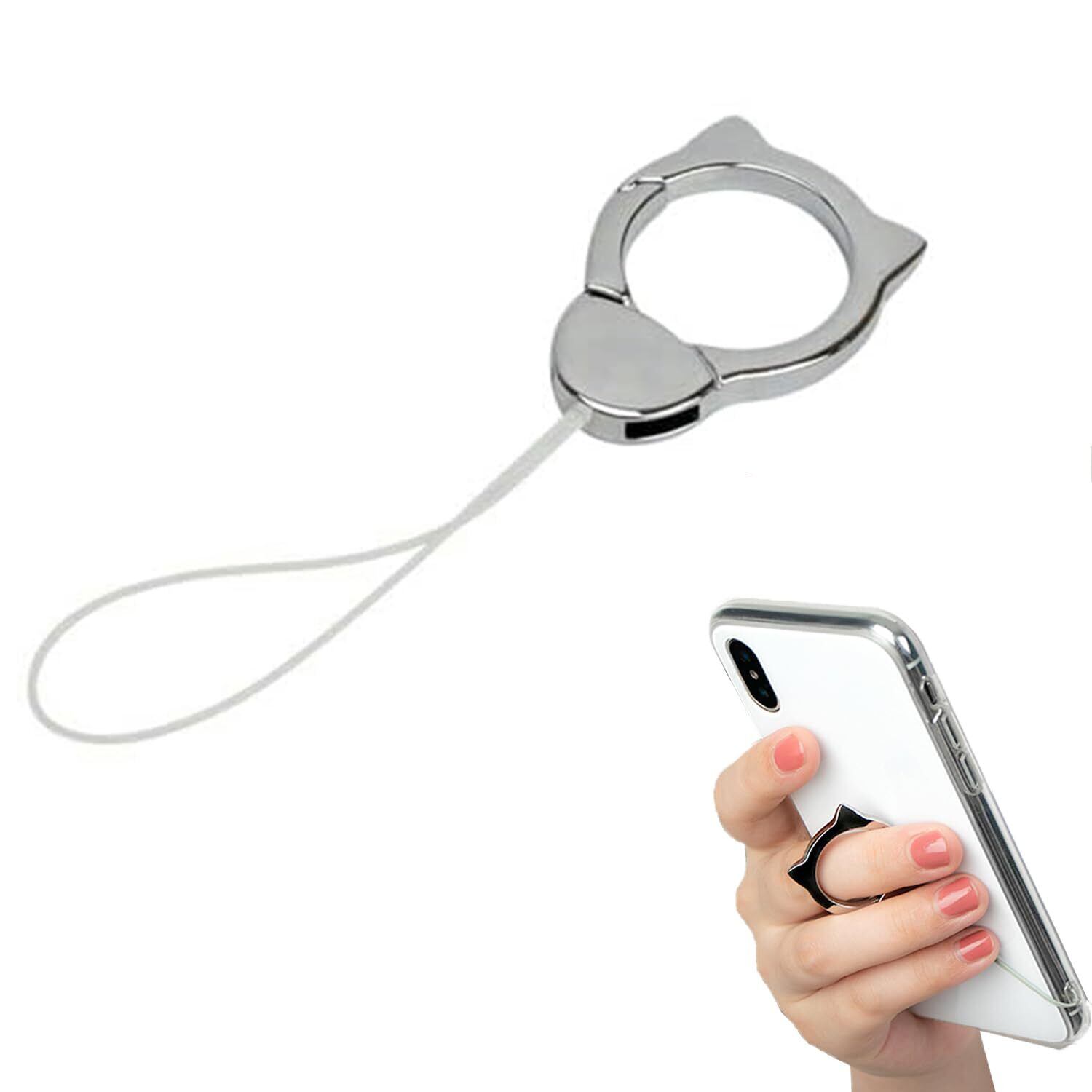 【在庫セール】リングストラップ フィンガーストラップ スマホ ホールド ねこ 耳 合金 落下防止 フィンガーストラップ 吊下げひも スマホ ショルダーストラップ カラビナ スマホ フィンガー 携帯ストラップ フィンガーリング 銀色 | allstore5