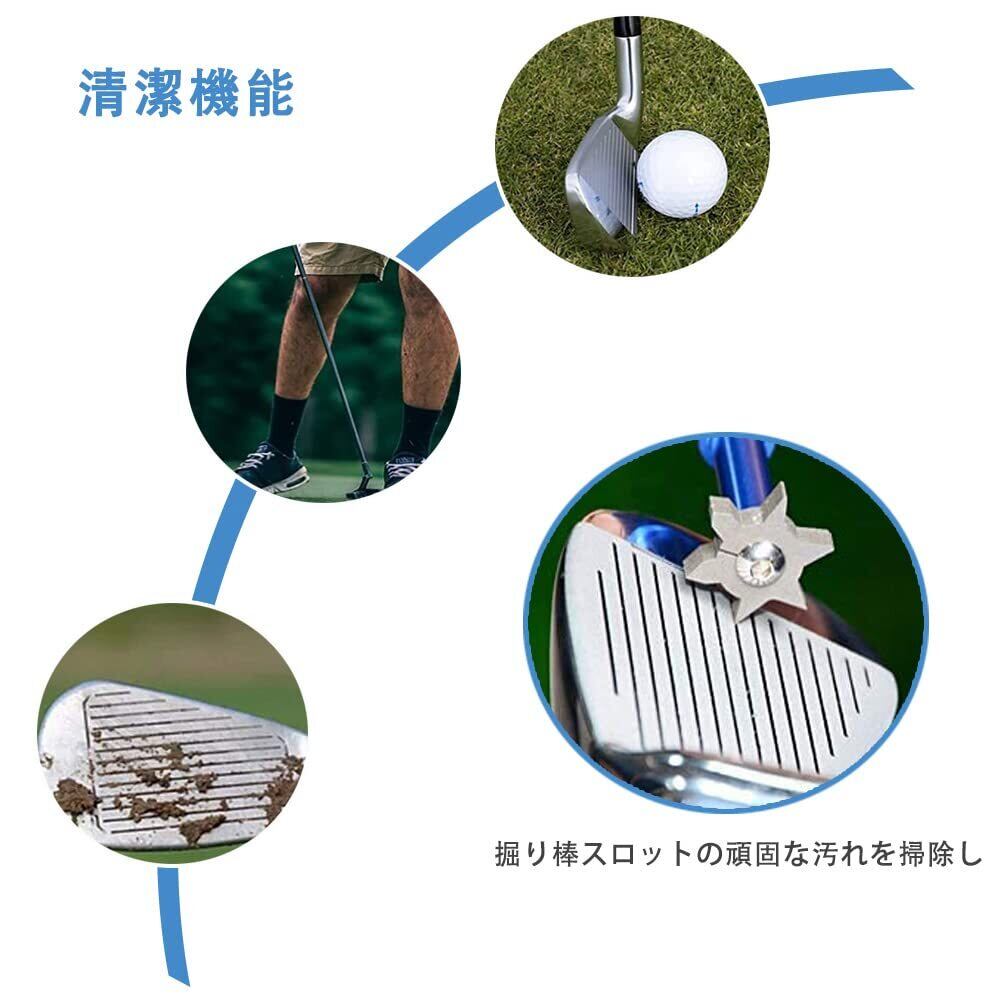 【ヤスリ】六つのヤスリが持ちています。それぞれの角度が違いため、アイアン、ウェッジなどを多角度で清潔できます。アイアンの溝に砂が詰まって固まりなどな問題を簡単に解決でき、スピンを維持します。