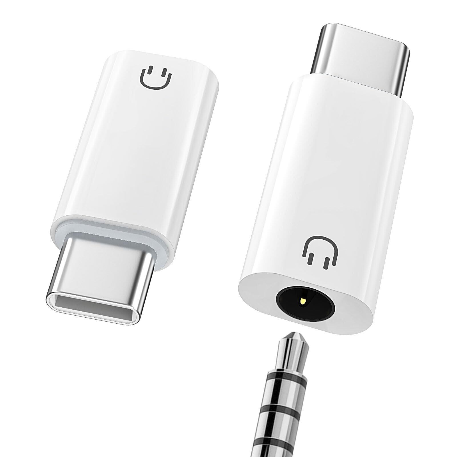 【2個セット】 MoKo USB C to 3.5mm イヤホンジャック 変換アダプター 3.5mm 4極 3極 Type C イヤホン/ヘッドセット変換アダプタ DACチップ搭載 音楽/音量調節/通話 インラインコントロール対応 /iPhone16/15/iPadPro/Air/MacなどUSB-Cコネクタの端末に対応 White