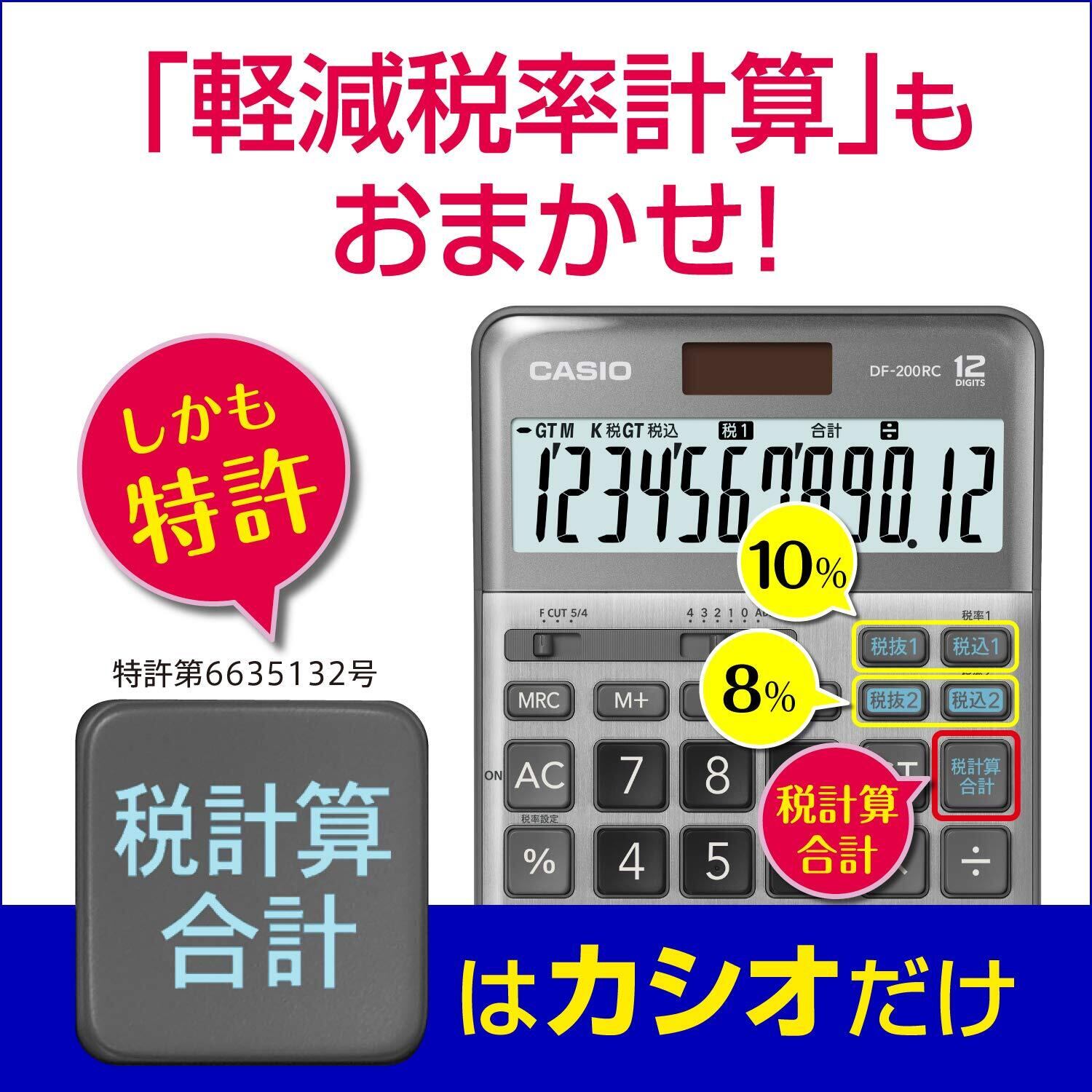 【特価商品】カシオ 軽減税率電卓 12桁 税計算合計機能 デスクタイプ DF-200RC-N