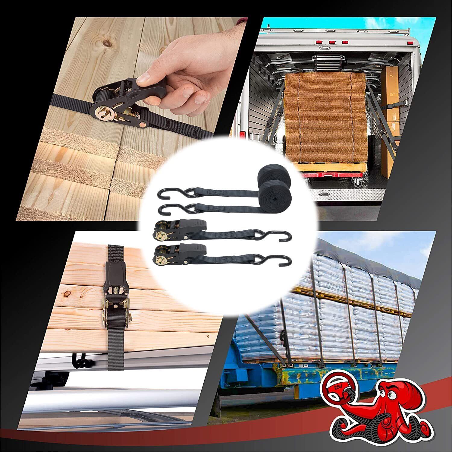 【新春セール】ラッシングベルト ラチェット式ベルト 荷締めベルト 荷物固定ベルト 5m 黒 ラッシング幅2.5cm 破断荷重約800kg 2本組 ブラック