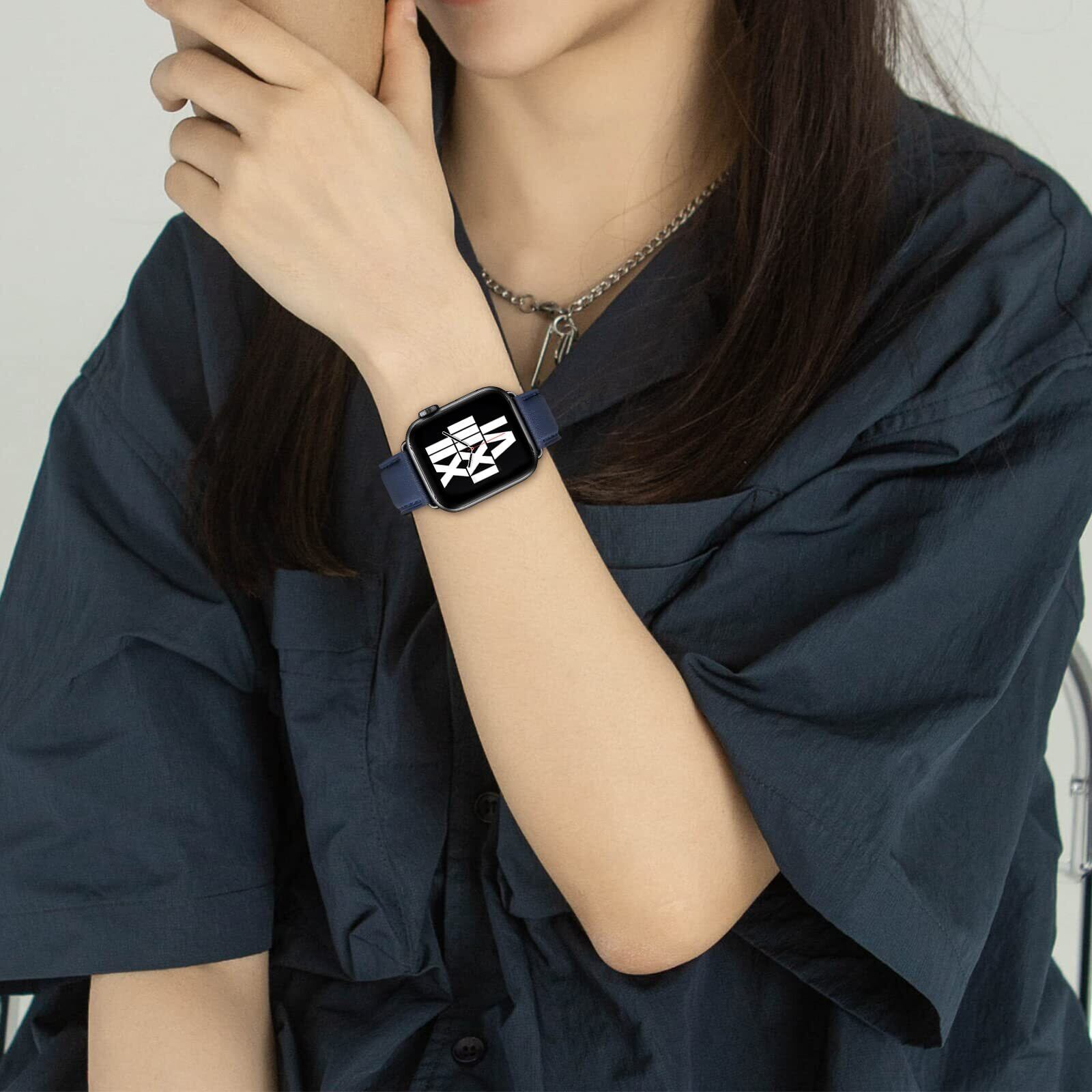 コンパチブル アップルウォッチ バンド 革 46mm 42mm 44mm 45mm 49mm 40mm 41mm 38mm コンパチブル Apple Watch バンド 本革 レザー ビジネス 男女兼用 コンパチブル iWatch Ultra/Ultra2/SE/SE2/Series10/9/8/7/6/5/4/3/2/1に対応(ダークブルー・ブラック)