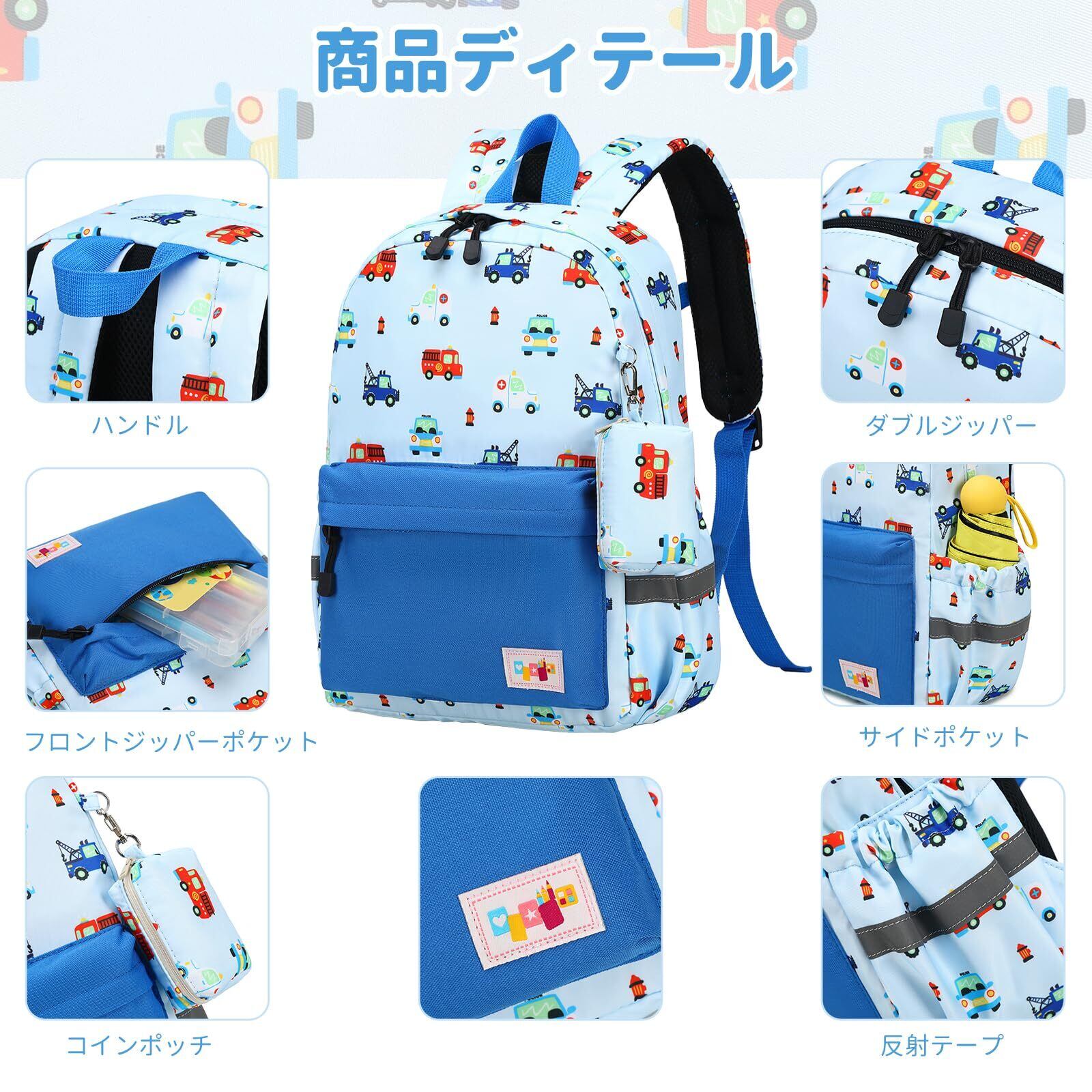 人気な恐竜、ユニコーン、マーメイド、宇宙船柄など、見た目がかわいい、初めての保育園・幼稚園での生活も安心して過ごせます。