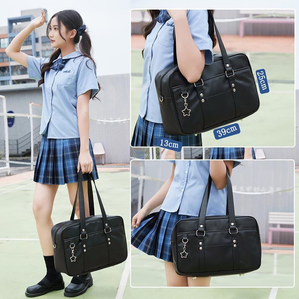 [ARIALK] スクールバッグ 合皮 高校生 女子 通学 ボスドンバッグ スクバ 学生 JK 制服 スクールバック カバン 鞄 PU 大容量 男女兼用 学生鞄 大容量 修学旅行 内側キーリング付き