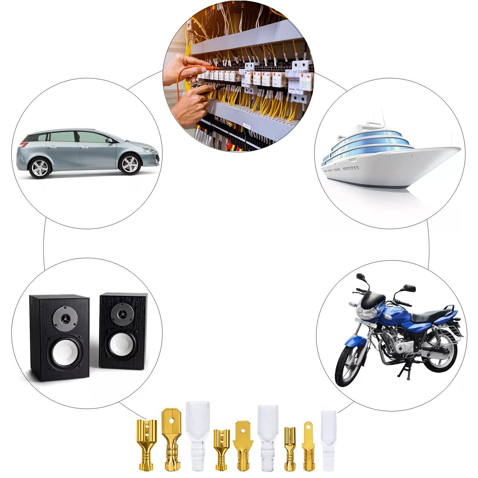 【シンプル】スペードコネクタのオスとメスは、使用と検査が容易です。 電線に圧着またははんだ付けし、高品質の熱収縮チューブで覆うだけで、きれいで強力なプロフェッショナルな接続が可能です。 安全のため、取り付けには電工ペンチをご使用ください。
