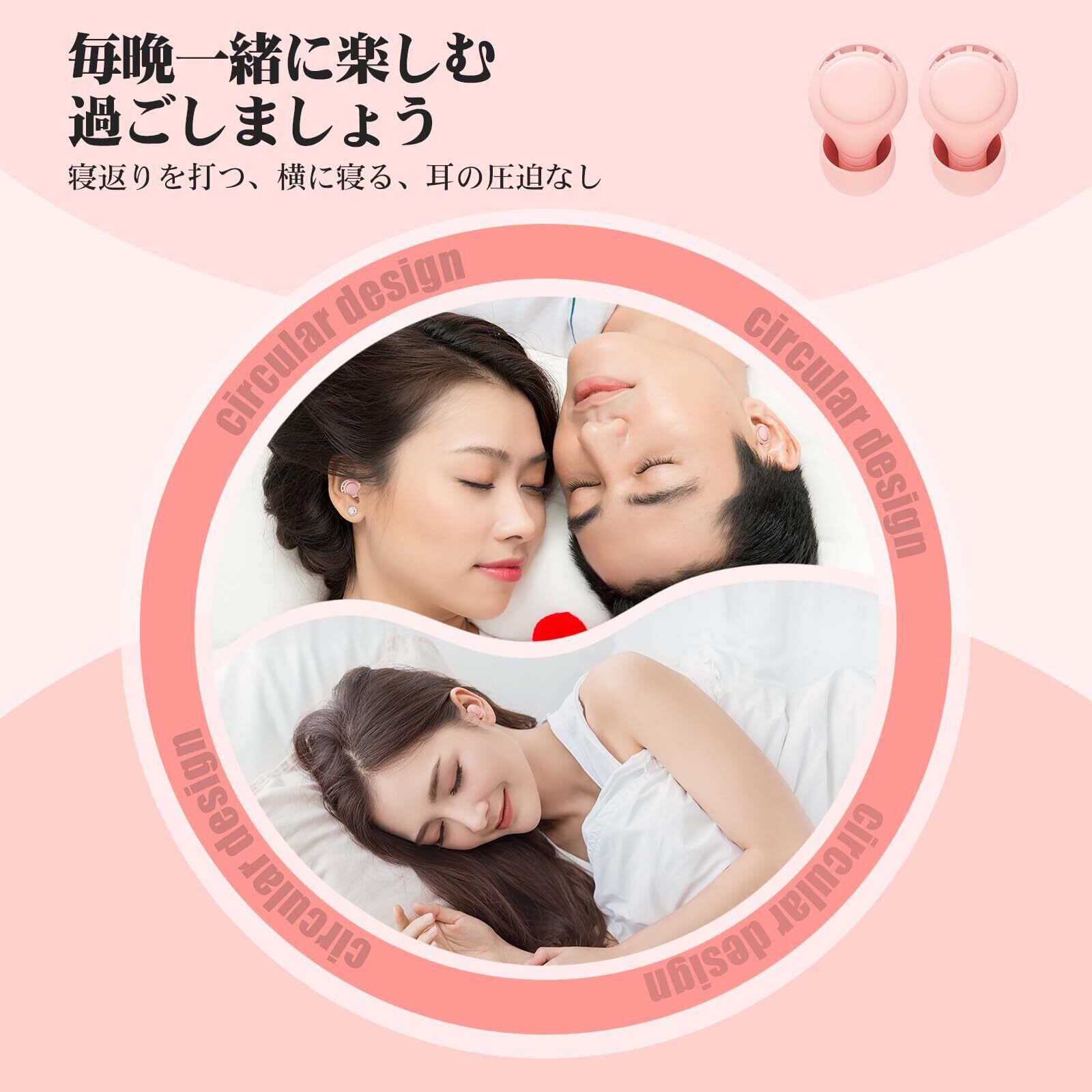 【数量限定】耳栓 睡眠用 2ペア 遮音 ノイズ低減 35dB 安眠グッズ ノイズキャンセリング 高性能 聴覚プロテクション 飛行機 勉強 いびき遮断 旅行 ライブ 仕事用 防音イヤープラグ シリコン製 水洗い可能 男女兼用 収納ケース付け (S/M/Lサイズ x 各2セット) (ピンク, フリーサイズ)