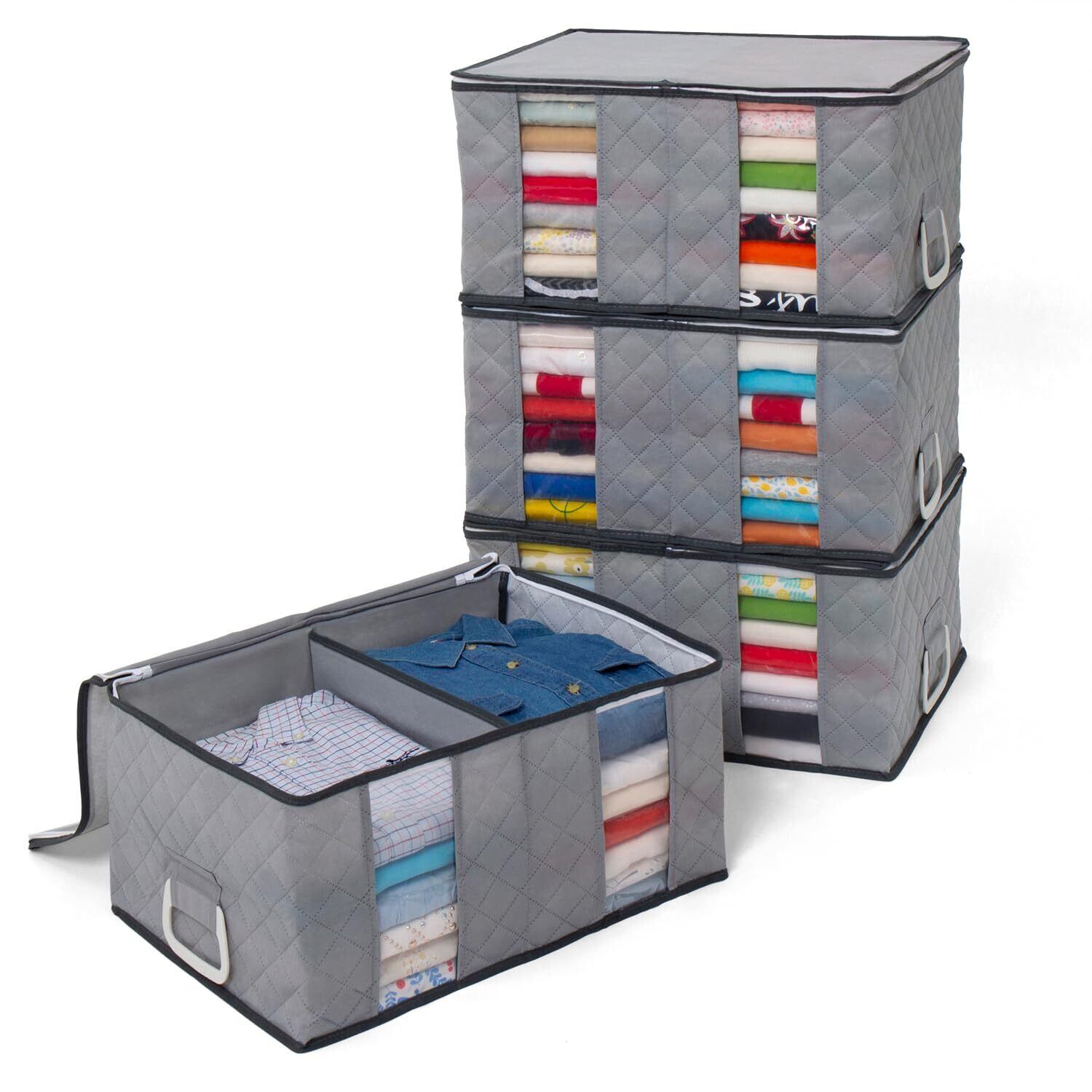 アストロ 収納ケース グレー 4枚組 衣類用 仕切り 持ち手付き 衣類収納袋 通気性の良い不織布がホコリなどの汚れをガード 仕切り付きで衣類が崩れにくい 持ち運びしやすい洋服 収納ボックス 衣装ケース クローゼット 押し入れ収納 179-07
