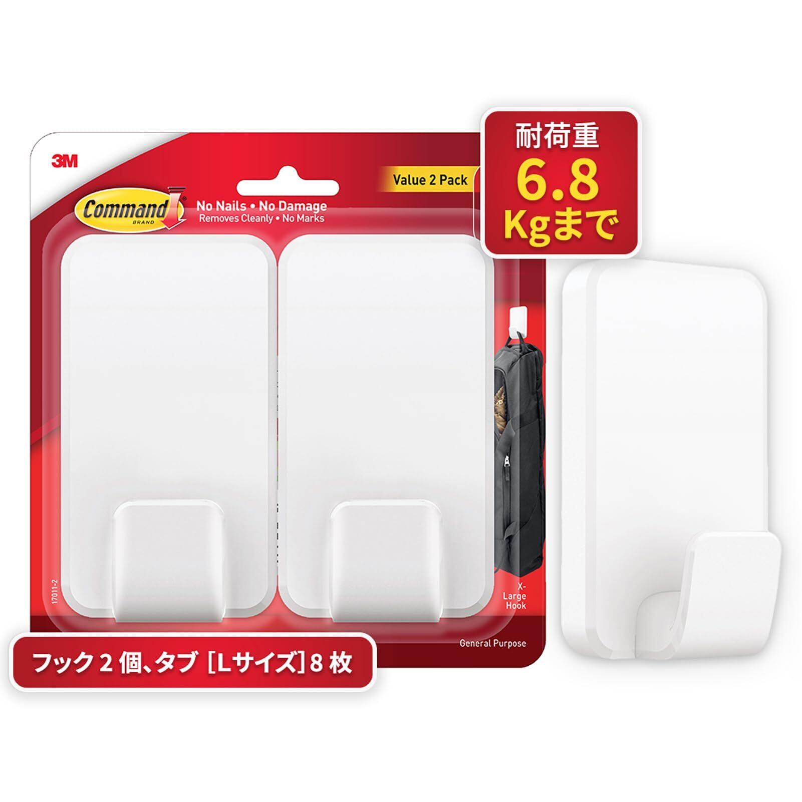 【特価セール】3M コマンド フック XXLサイズ 超強力 耐荷重6.8kg 2個パック 17011-2JP