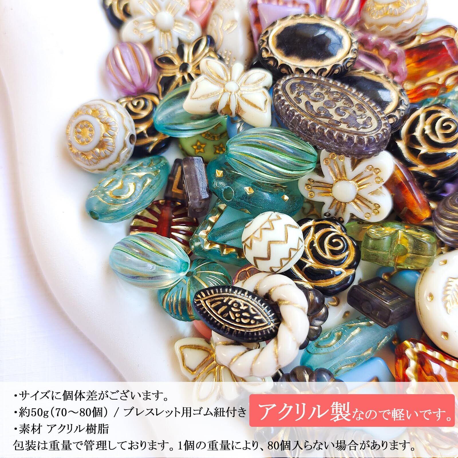 ビーズ アンティーク ミックス 50g入り アクリルビーズ 手芸 ハンドメイド アクセサリー ピアス パーツ チャーム ゴム紐付き(ミックス)