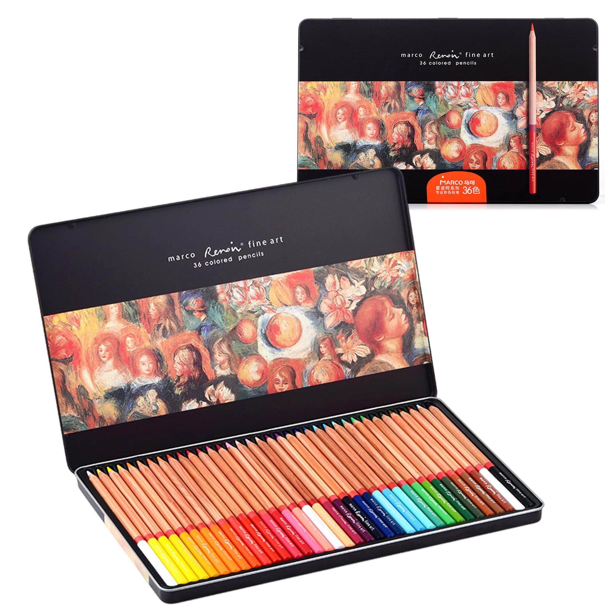 Marco色鉛筆 36色 油性 発色の良い 色えんぴつ プロ 3.7 mm粗芯 折れにくい 大面積敷き色ふっくら重ね塗り可能 着色しやすい 子供 大人 学生 専門美術従事者向け 鉄箱入 高級プレゼント,3100-36色