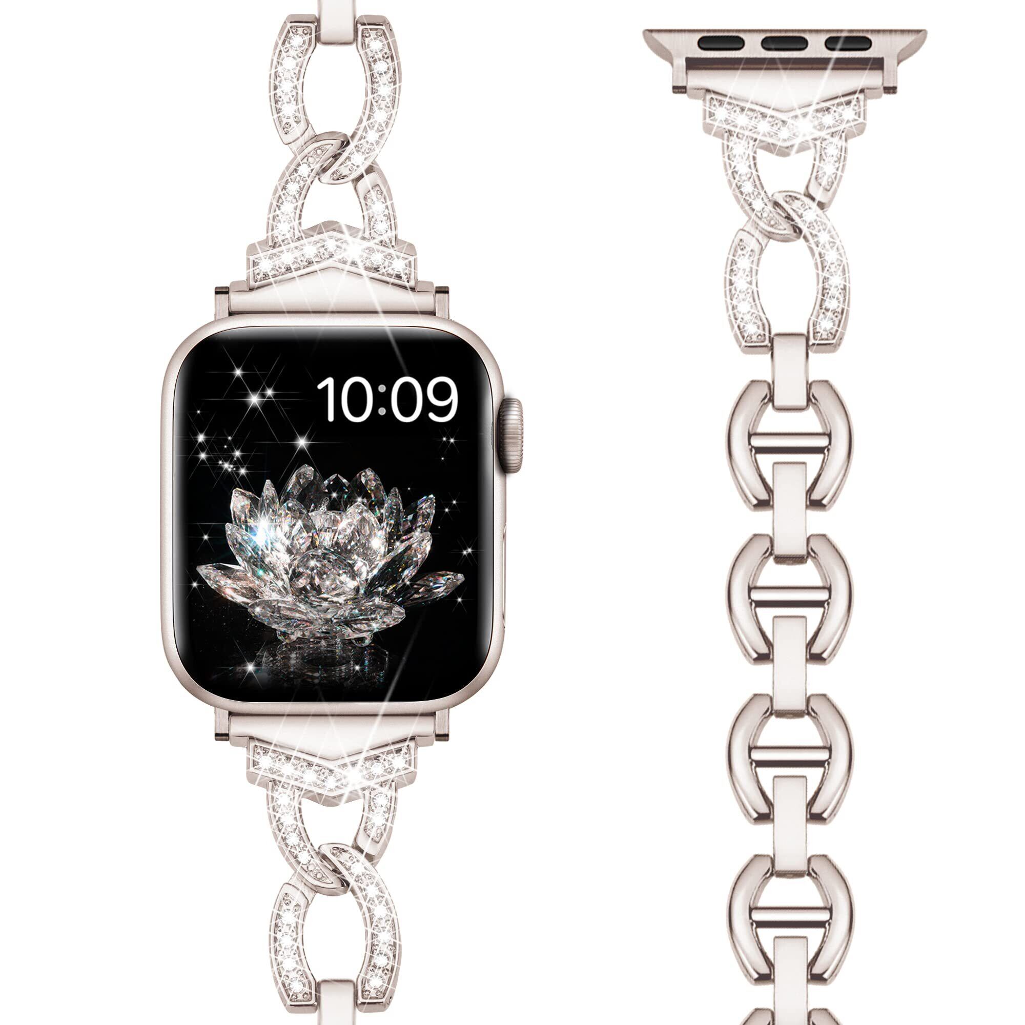 【特価セール】[Daturus] 互換性があります Apple Watch バンド ダイヤモンドラインストーン ステンレス アップルウォッチ ベルト Apple Watch 10/9/8/7/6/5/4/3/2/1、Ultra、SEに対応 アップルウォッチバンド( スターライト、46mm/45mm/44mm/42mm-Series 3/2/1)