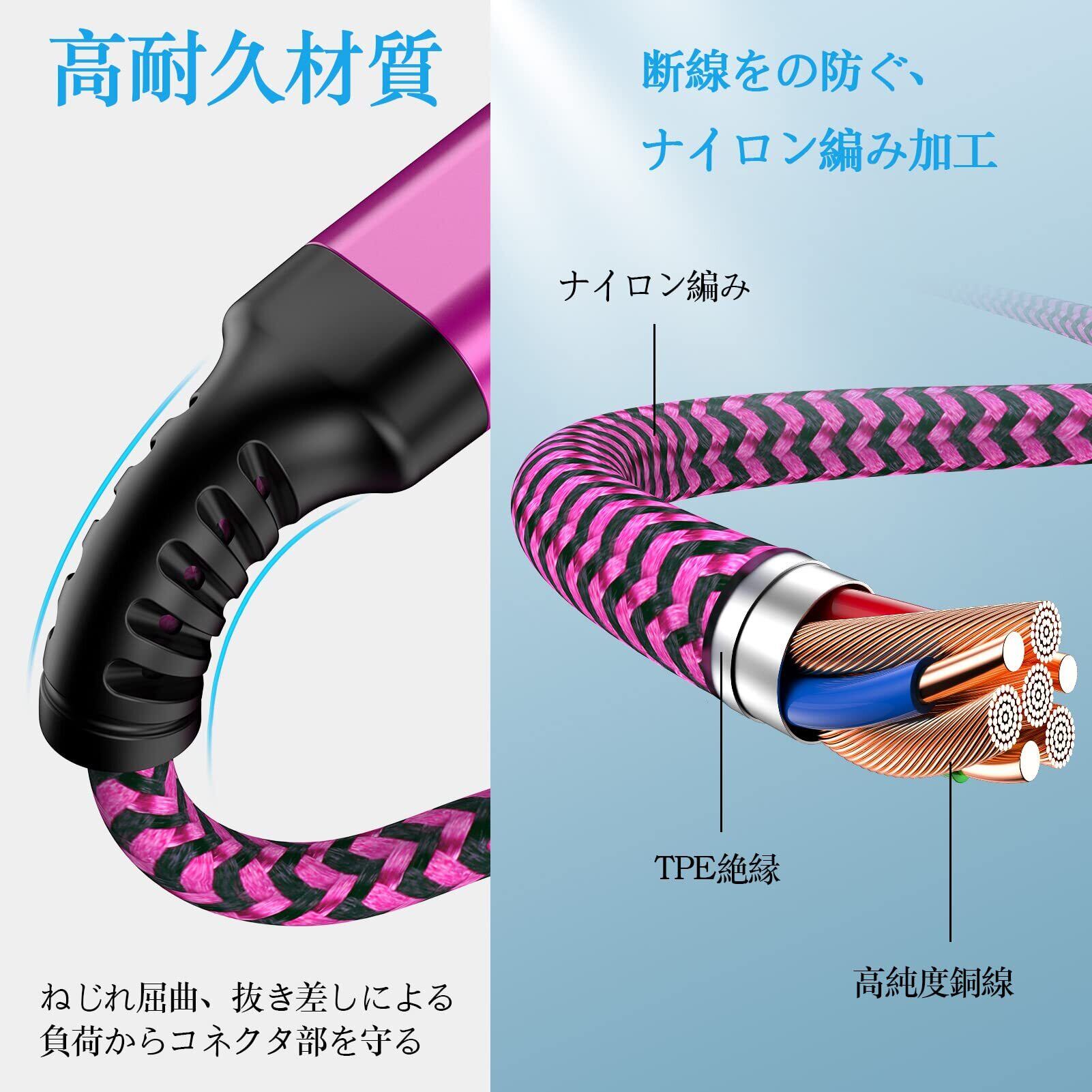 【頑丈な構造】2本セット 充電コード 2in1は優質ナイロン編み、一般的なケーブルより10倍以上の耐久性をもち、10000回以上の厳しい折り曲げテストもクリアしました。断線防止のため、アルミ合金製接続口を採用し、高耐久性で抜挿寿命性向上、安心して充電することができます。