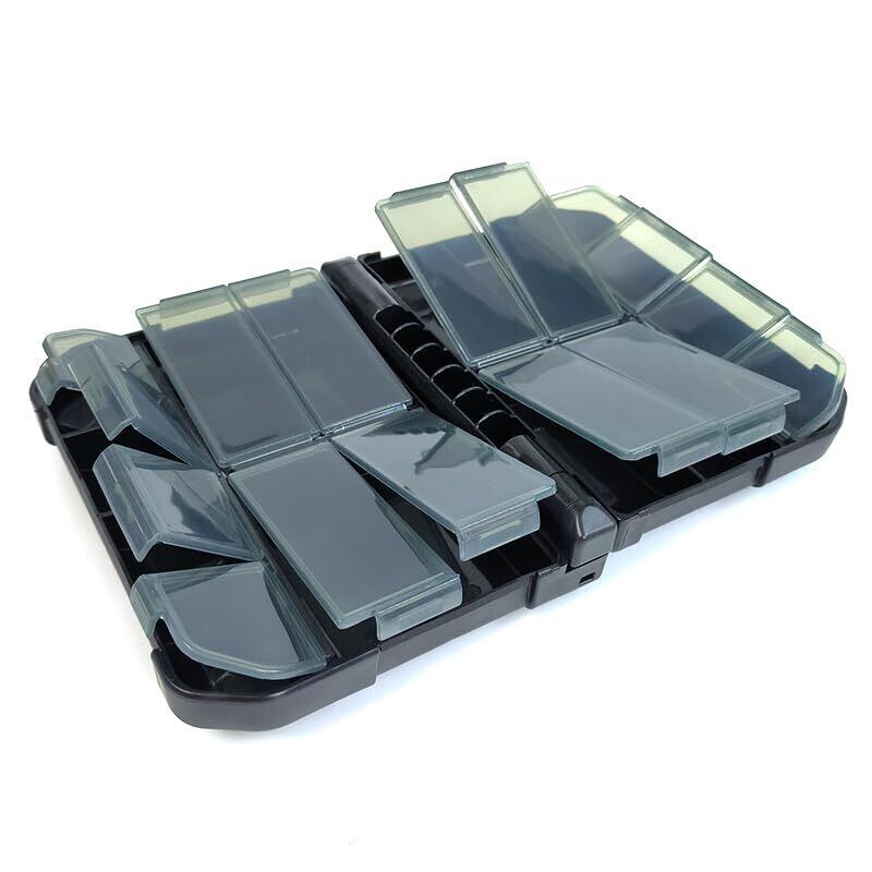 ■フックはもちろん、テキサスシンカーやジグヘッドが十分収納可能な深さで、最大16種類の小物をサイズ別に小分けする事が可能。