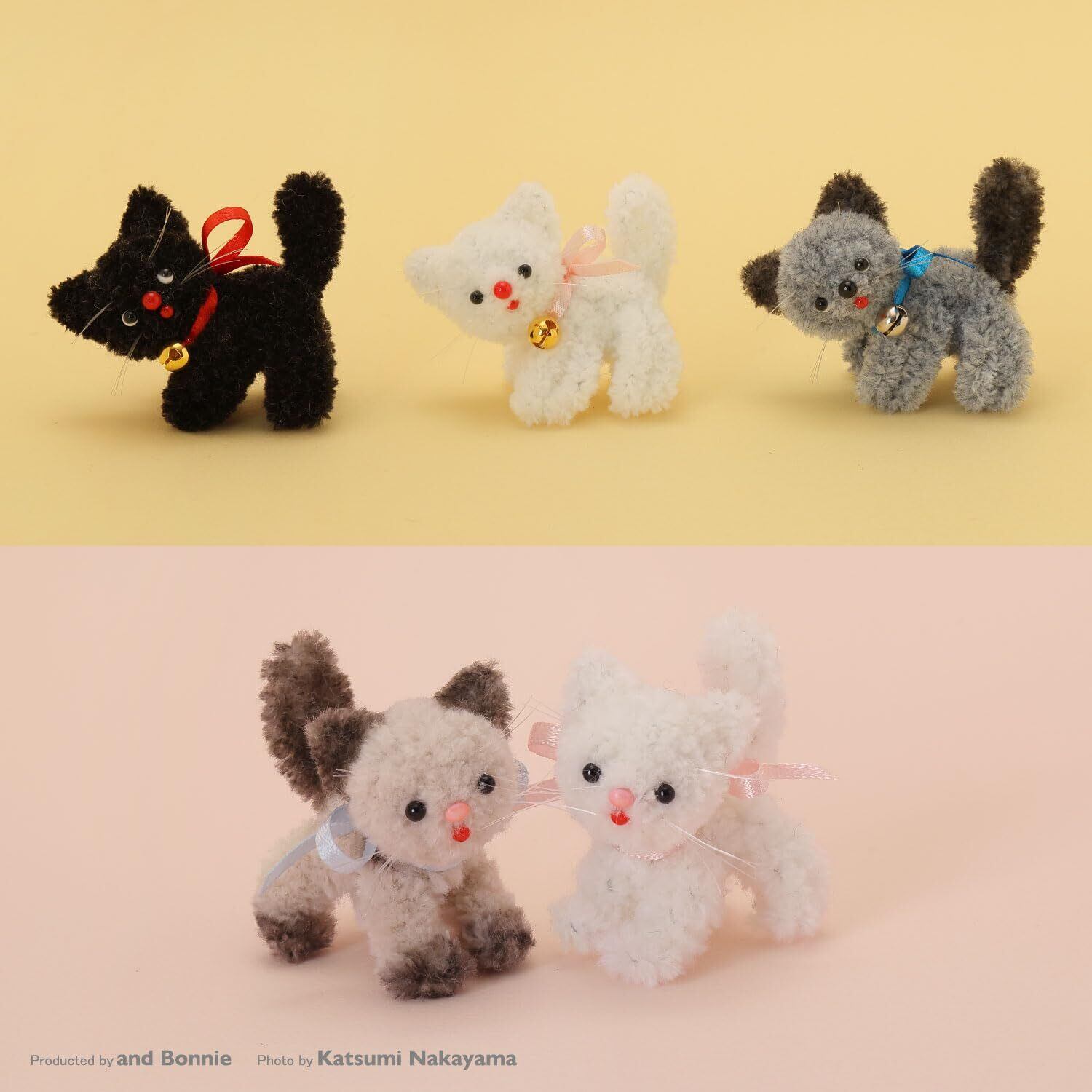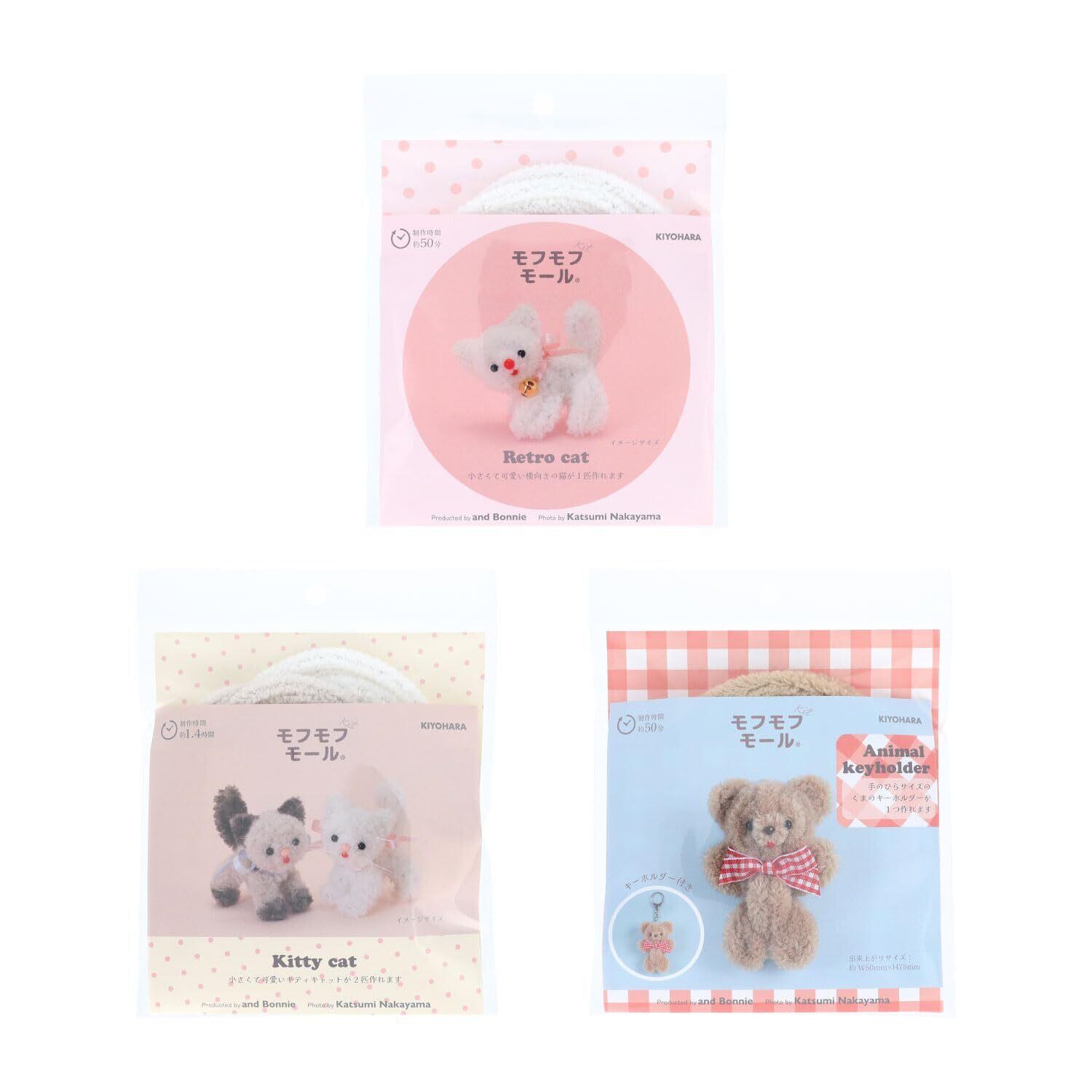 モフモフモールでかわいいミニチュア動物が作れるキットで、小さくてカワイイキティキャットが2匹作れます。オリジナルのモールアートでテディベア・ミニチュア動物制作を中心に活動しているand Bonnie(アンド ボニー)とのコラボアイテムです。