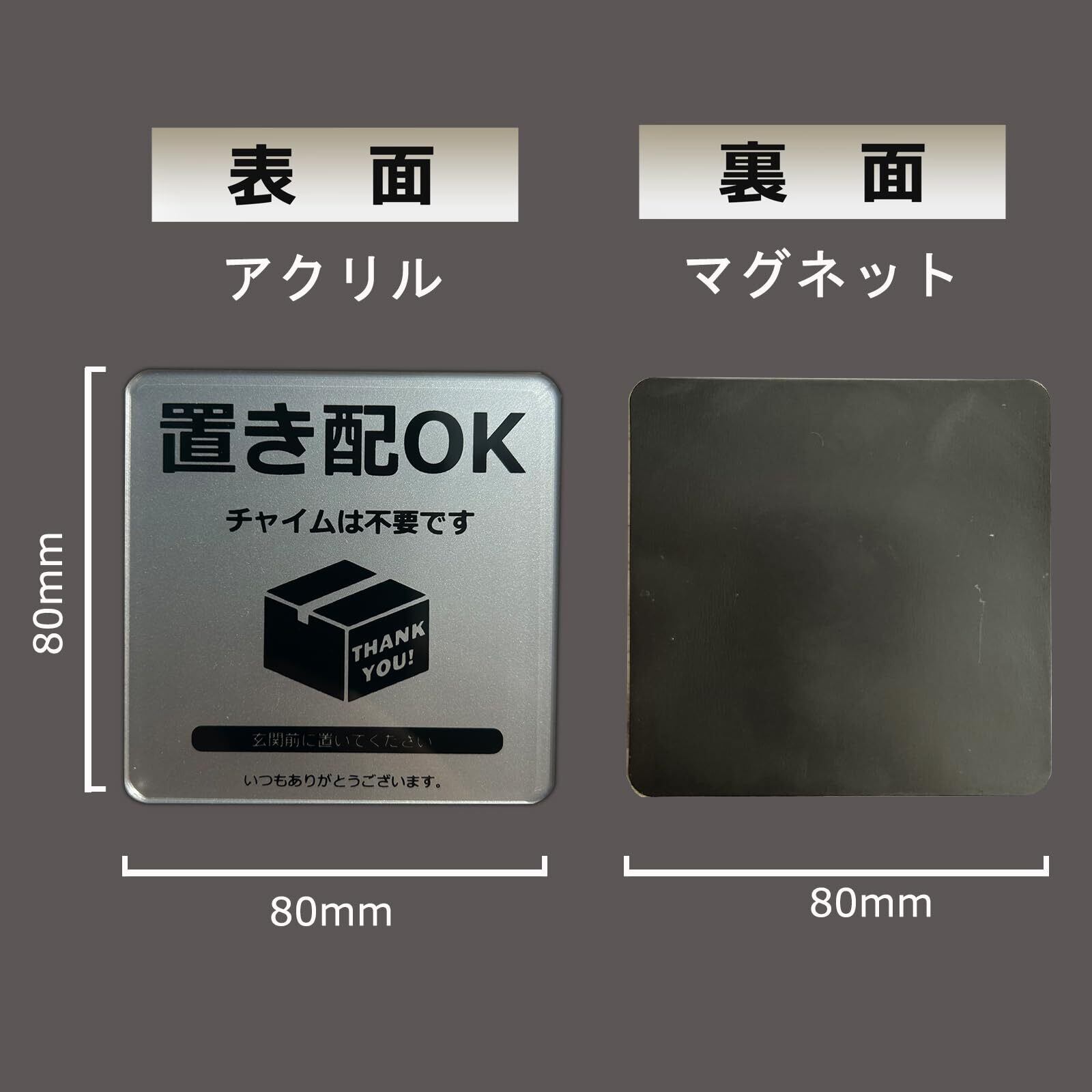 置き配OK チャイムは不要です マグネット サインプレート 置き配達 不在案内 再配達防止 2㎜アクリル製 おしゃれ 8×8㎝ (置き配OK(チャイム不要), マグネット)