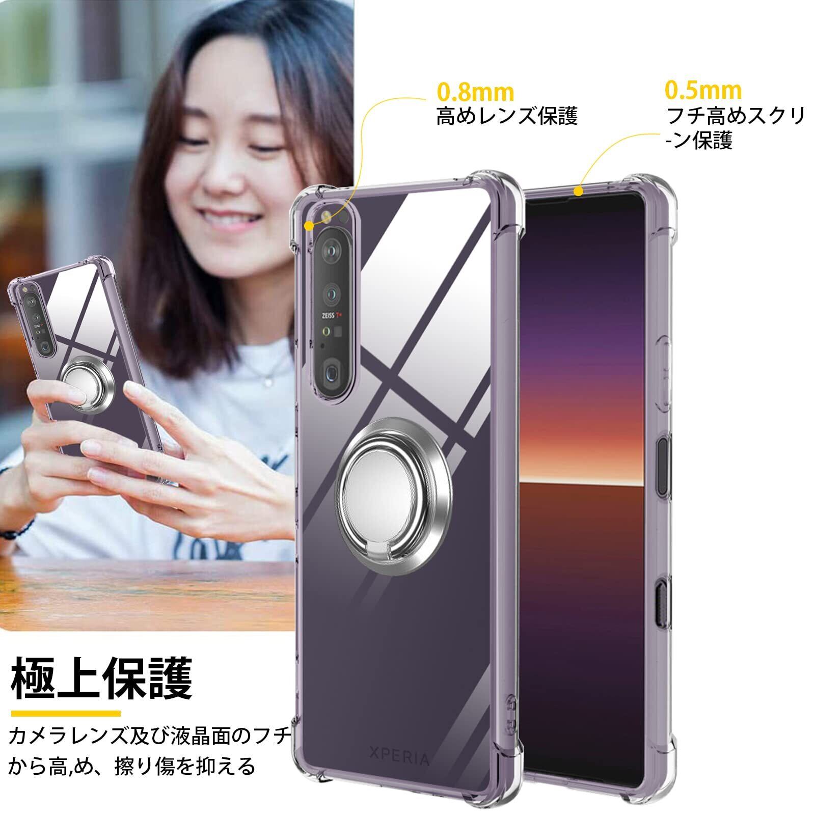 Xperia 1 IV ケース リング クリア TPU シリコン リング付き 薄型 SO-51C カバー SOG06 ケース 軽量シリコン 耐衝撃 指紋防止 360回転 車載ホルダー対応 一体型 人気 携帯カバー (クリア)