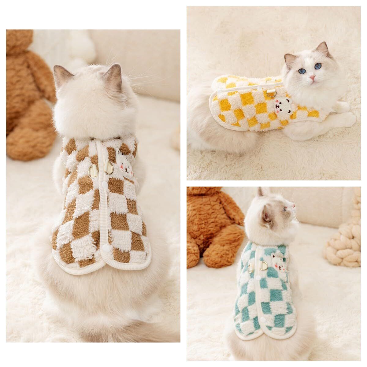 ペット服 秋冬用 犬 服 背中開き Dカン付き 冬 猫服 犬服秋冬 防寒 ベスト かわいい 洋服 柔らかい 犬の服 小型犬 中型犬 服 着脱簡単 抜け毛対策 防寒着 お散歩 お出かけ (S,イエロー)