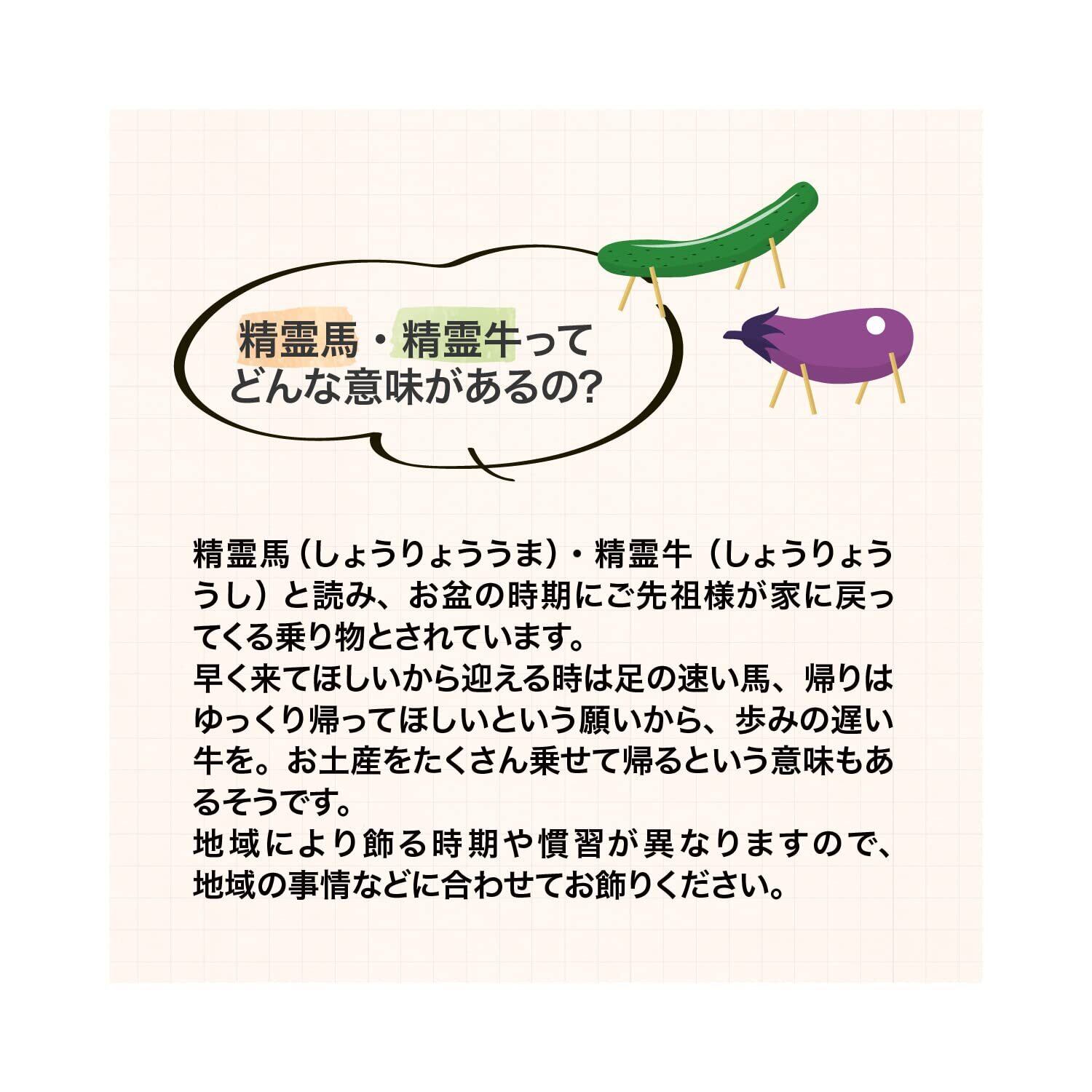 キュウリ馬を表現しておりお盆の際に少しでも早く迎えられるようにとの願いが込められています。