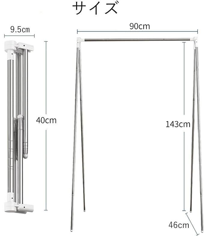 室内物干し 洗濯物干し 折りたたみ式 物干しスタンド 布団干し 幅40~90cm 高さ40~143cm 組立なし 設置不要 高耐荷重 40cm収納サイズ コンパクト 省スペース 収納便利 持ち運びが簡単 梅雨対策 室内 屋外用