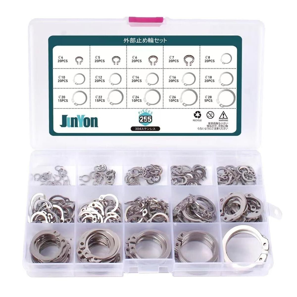 【人気商品】外部止め輪 外部スナップ サックリップ スナップリング 304ステンレス鋼 15種 4mm-28mm 255個